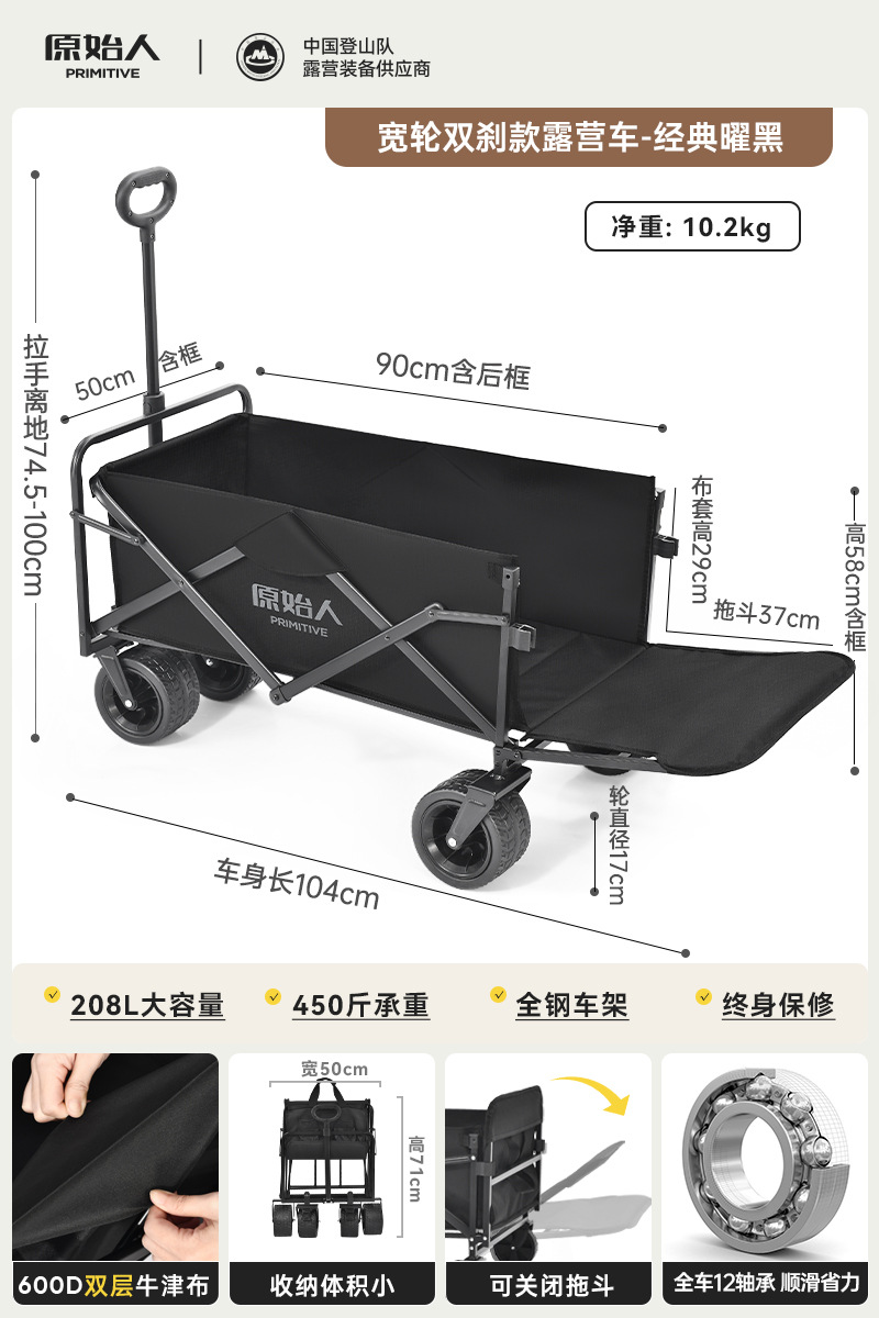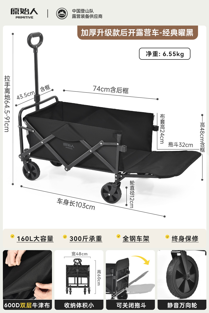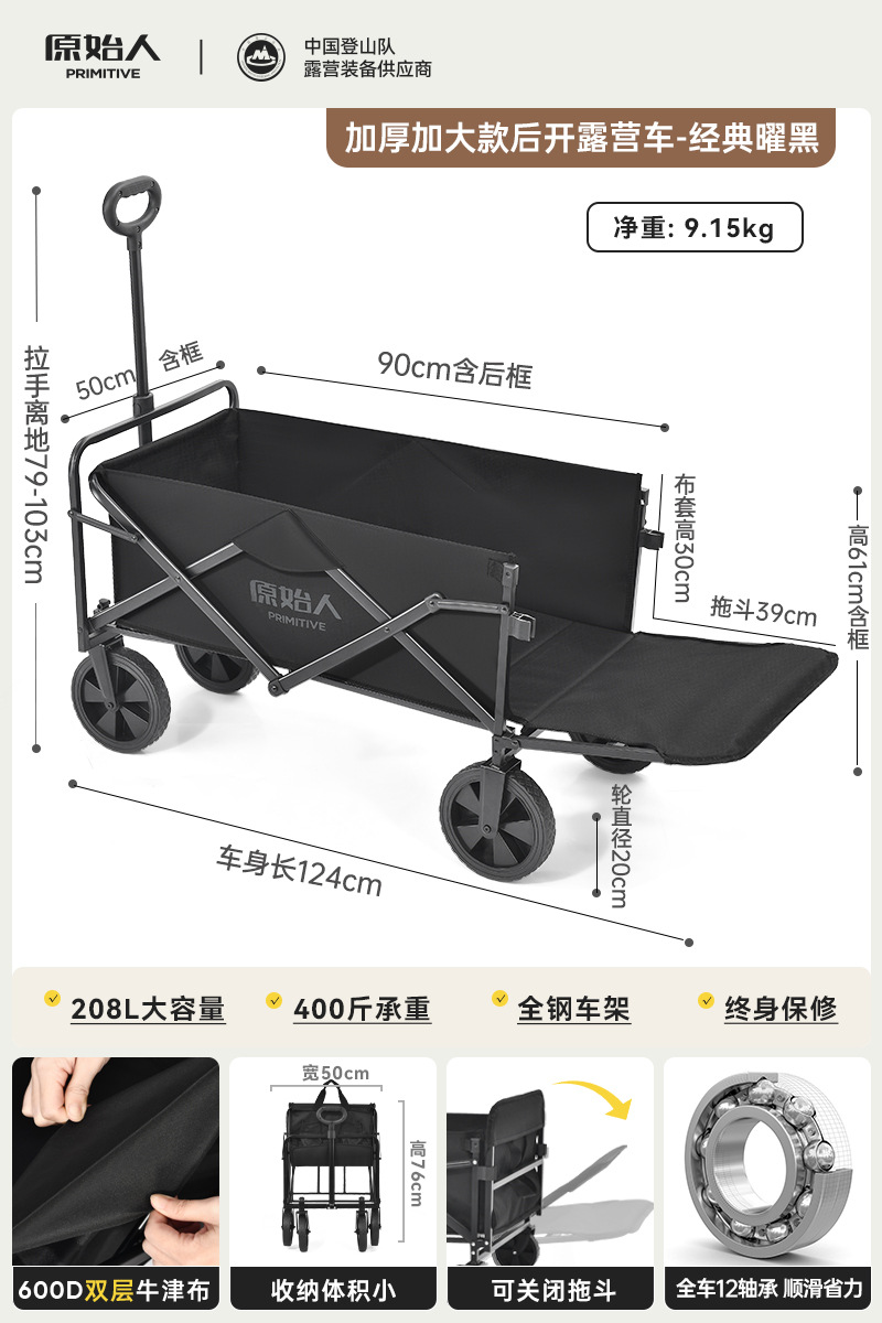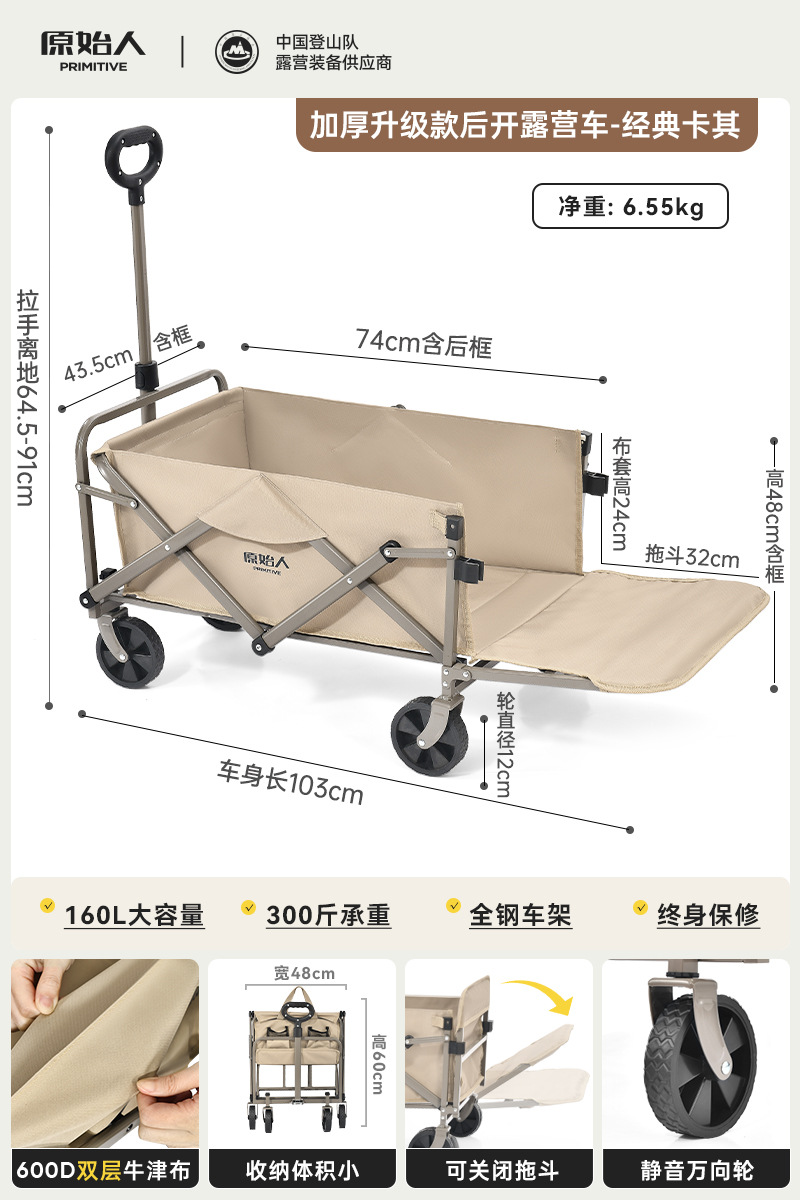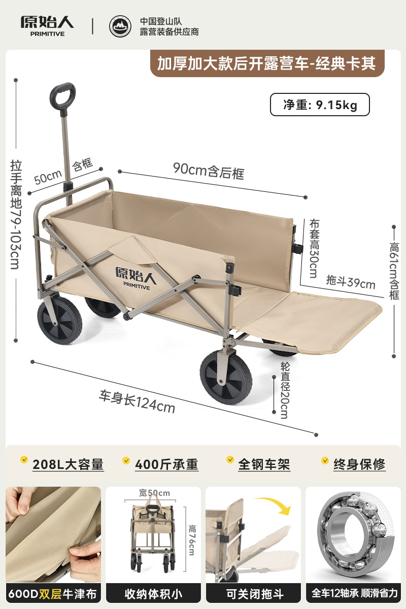 원시 남자 캠핑 카트 야외 접는 손 푸시 캠프 카트 어린이 거짓말 피크닉 트레일러 여행 캠핑 큰 크기