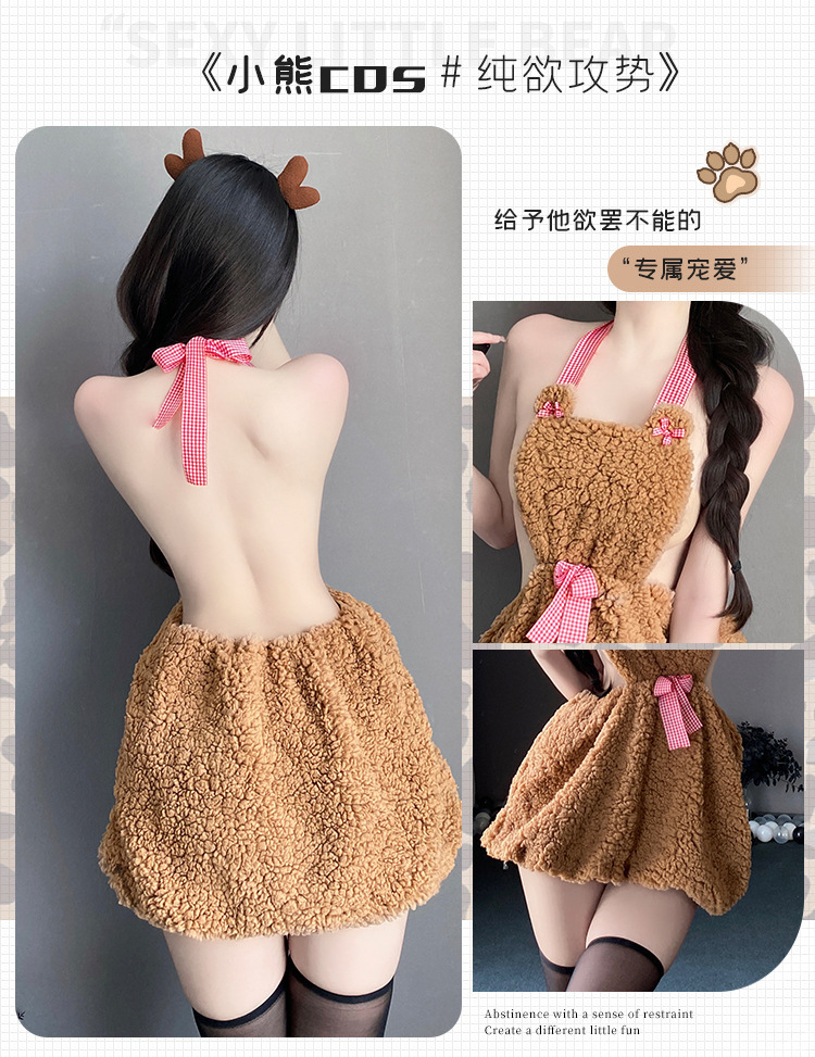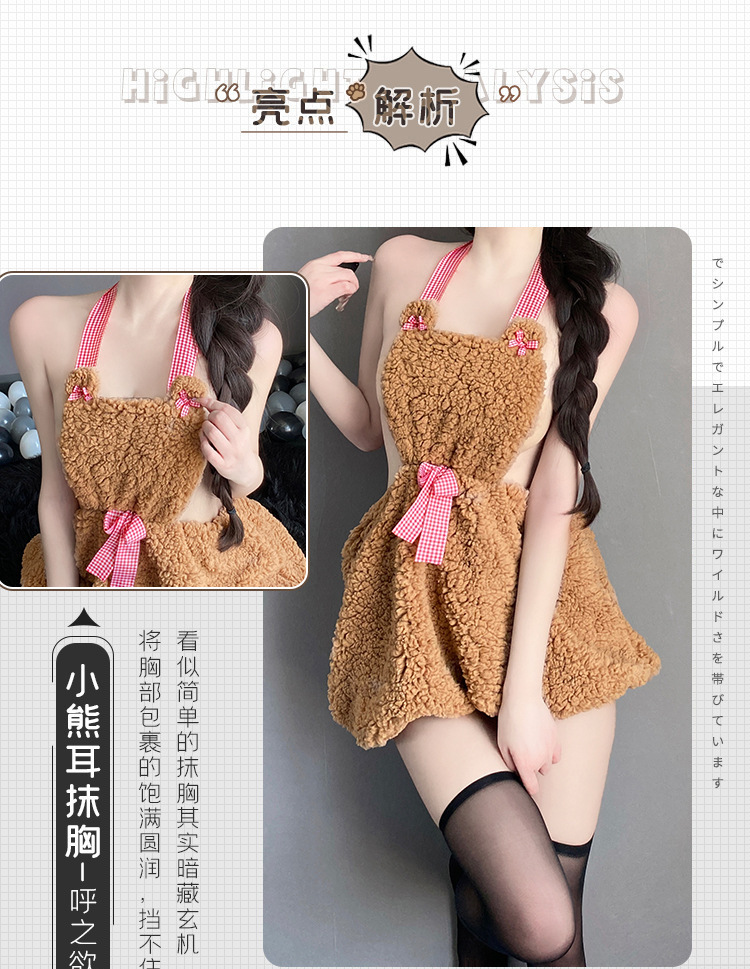 섹시한 란제리 귀여운 교수형 목 백리스 튜브 탑 봉제 멩곰 세트 순수한 욕망 미니 스커트 유니폼 유혹