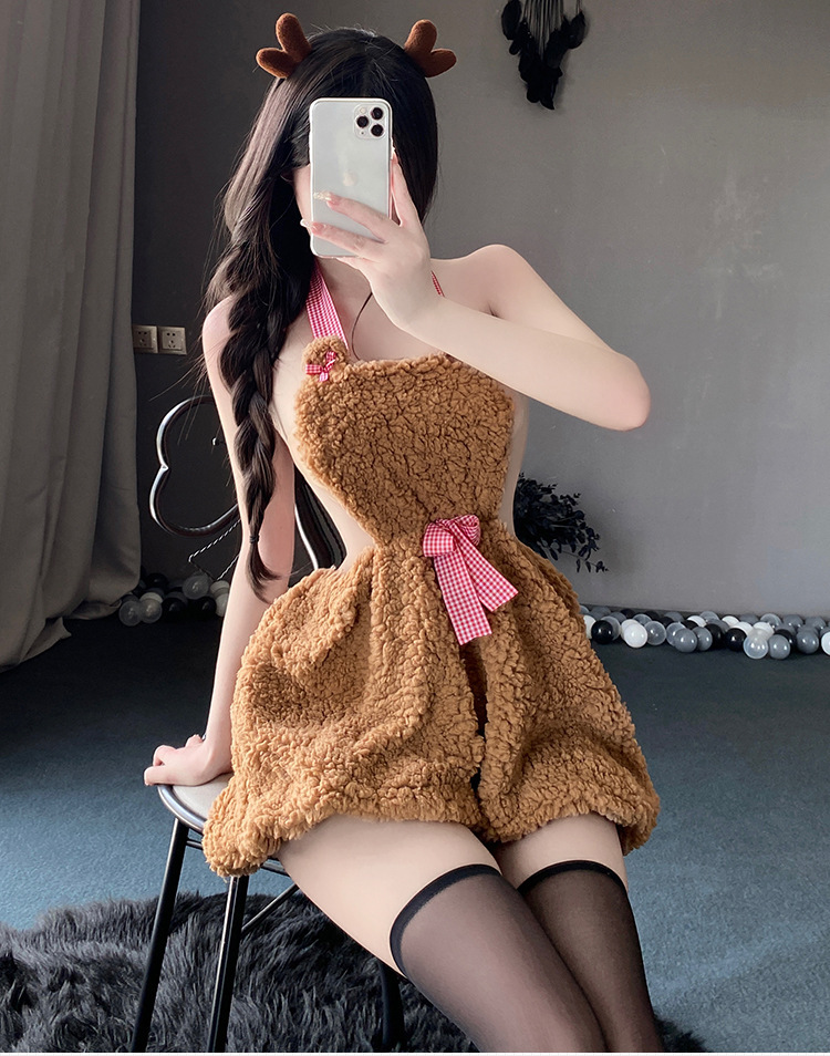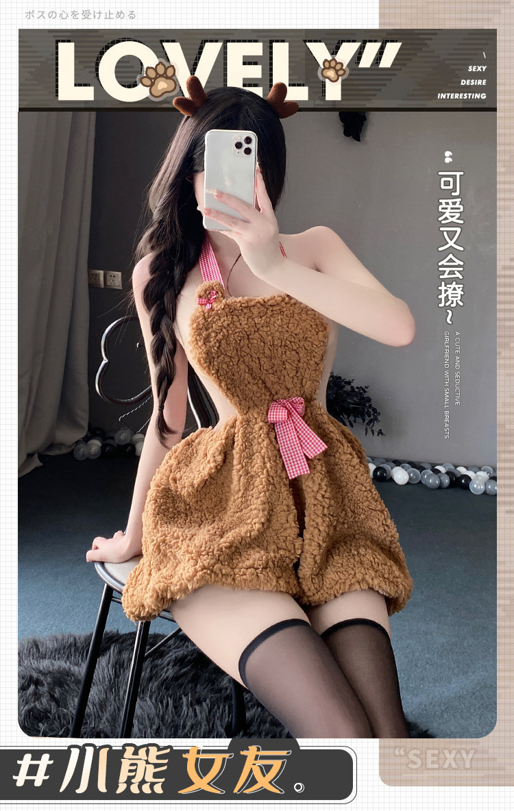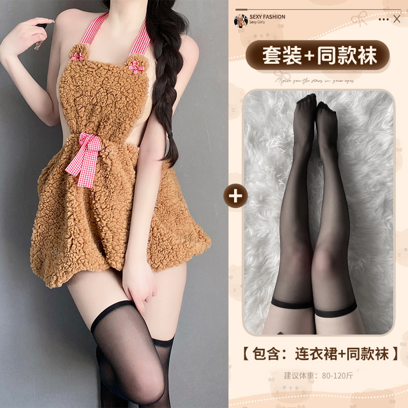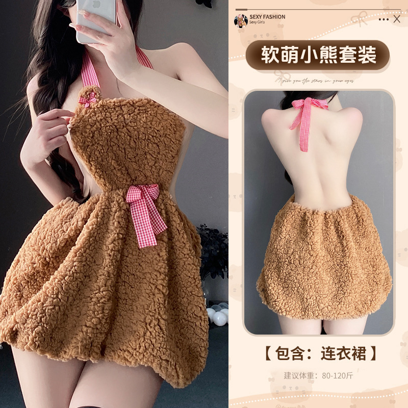 섹시한 란제리 귀여운 교수형 목 백리스 튜브 탑 봉제 멩곰 세트 순수한 욕망 미니 스커트 유니폼 유혹스토어 가기