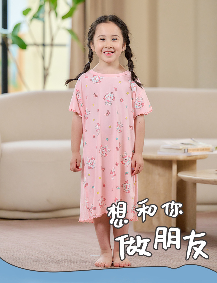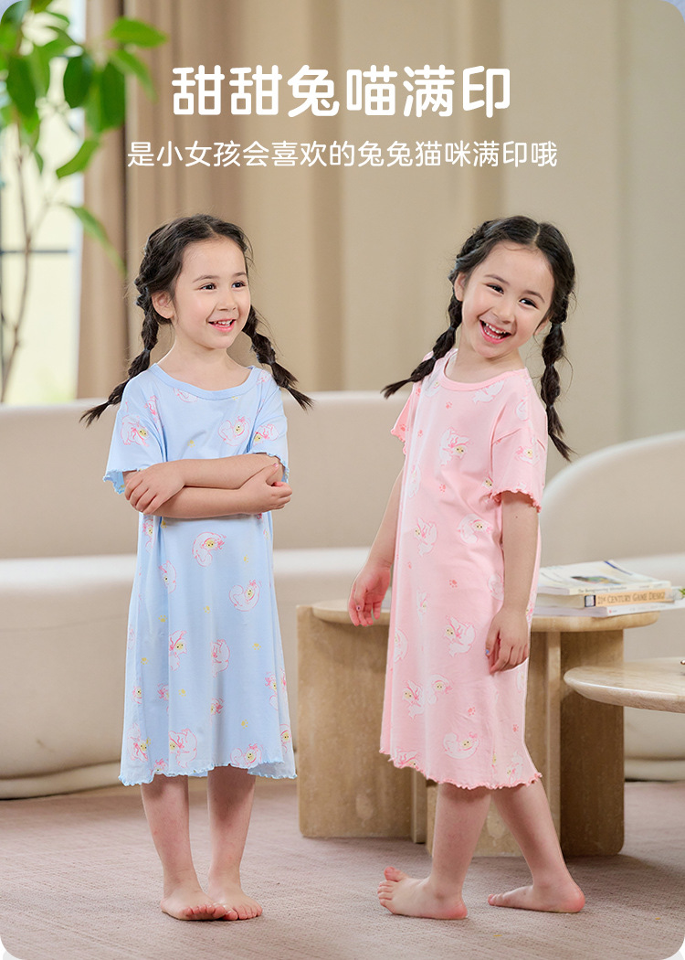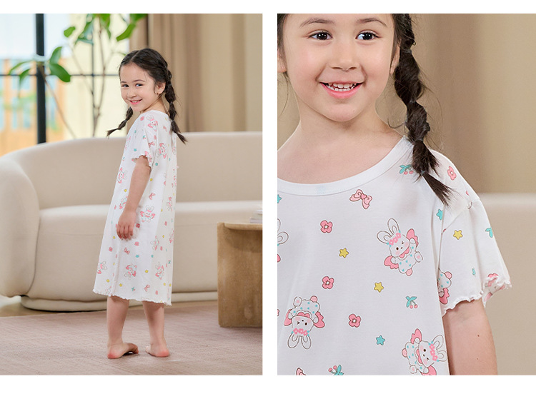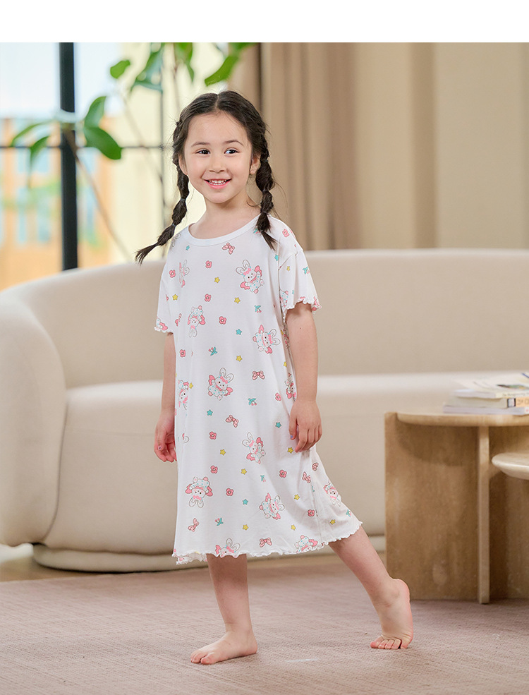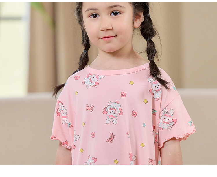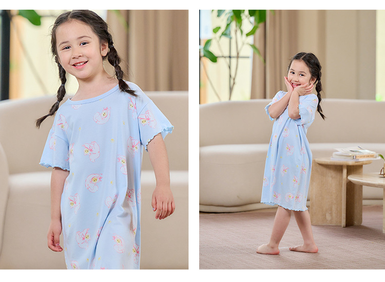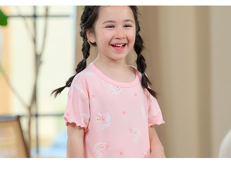 Miantiantang 여름 소녀 잠옷 반팔 어린이 잠옷 홈 의류 소녀 귀여운 공주 귀여운 스타일스토어 가기