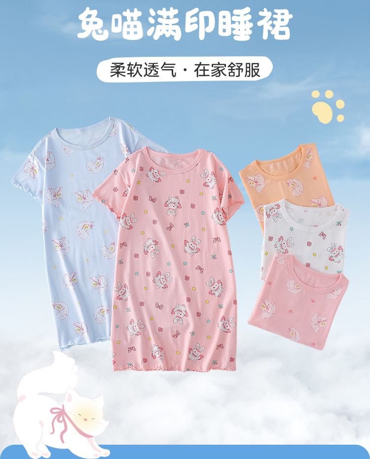 Miantiantang 여름 소녀 잠옷 반팔 어린이 잠옷 홈 의류 소녀 귀여운 공주 귀여운 스타일