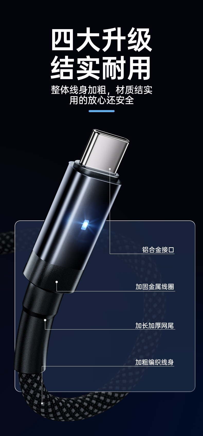 【자동 전원 차단】100w 초고속 충전 typec 데이터 케이블 과충전 방지 안드로이드 휴대폰 차량용 충전 케이블스토어 가기