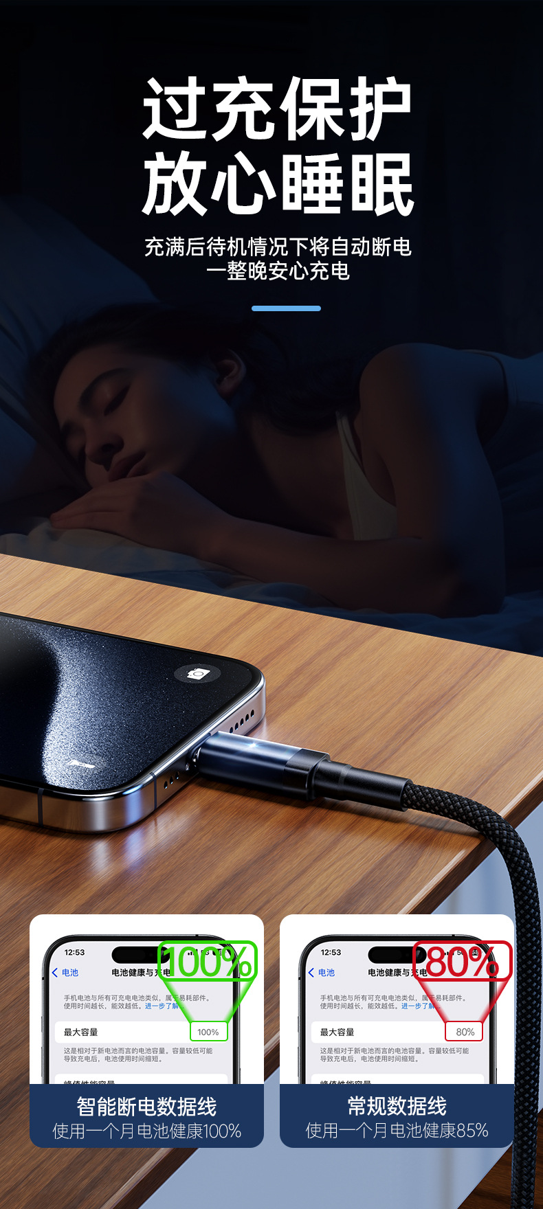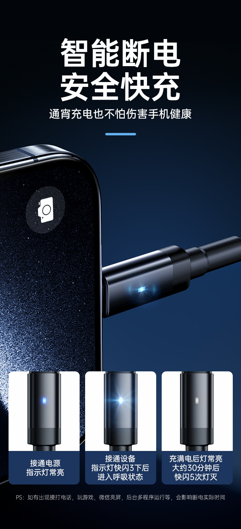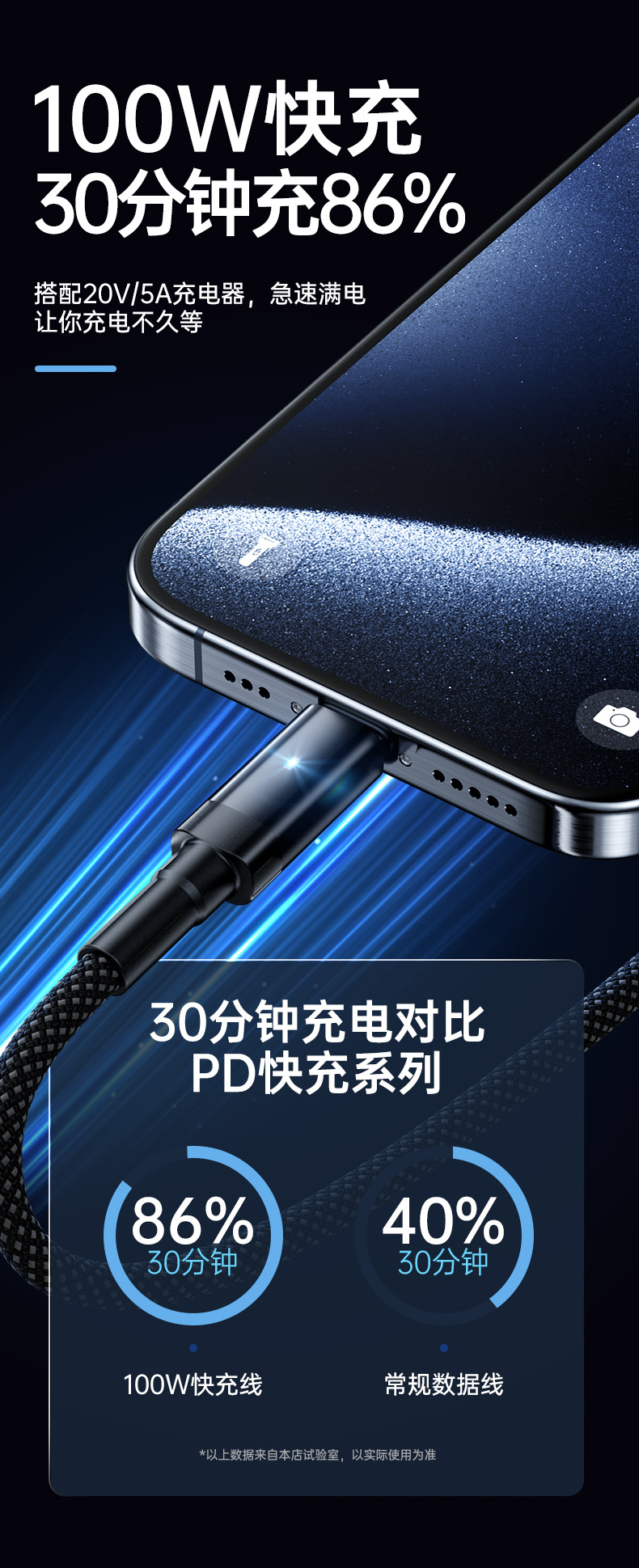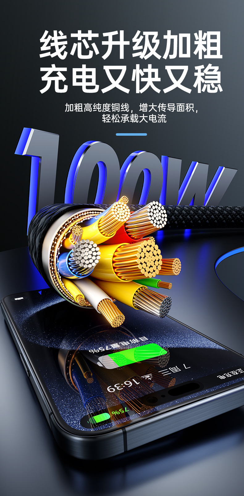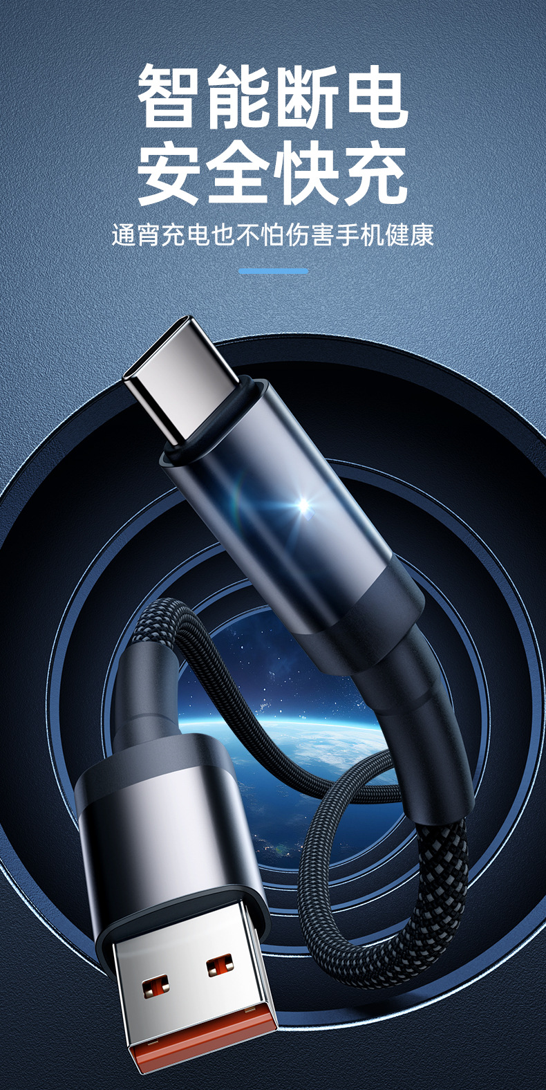【자동 전원 차단】100w 초고속 충전 typec 데이터 케이블 과충전 방지 안드로이드 휴대폰 차량용 충전 케이블