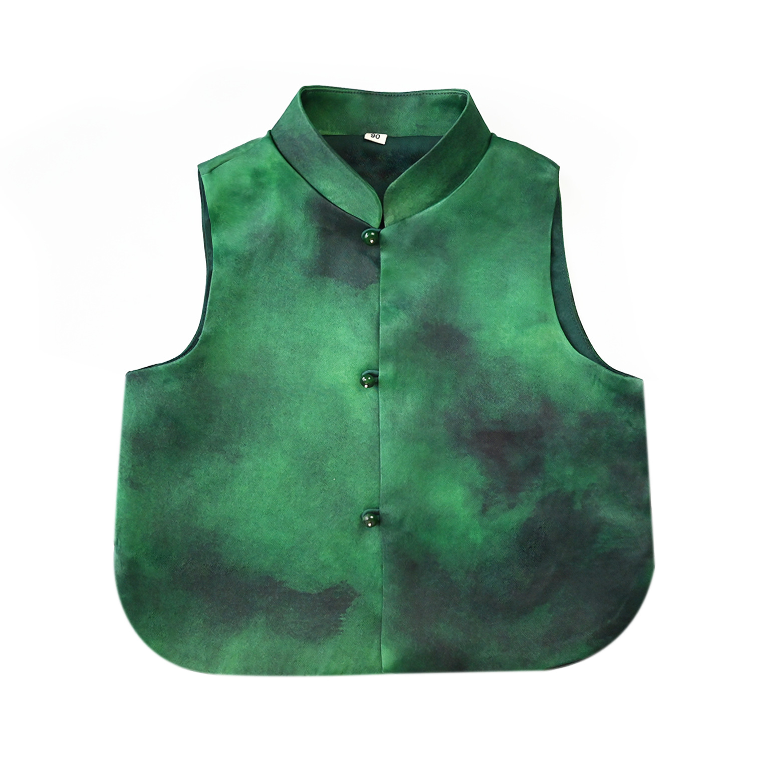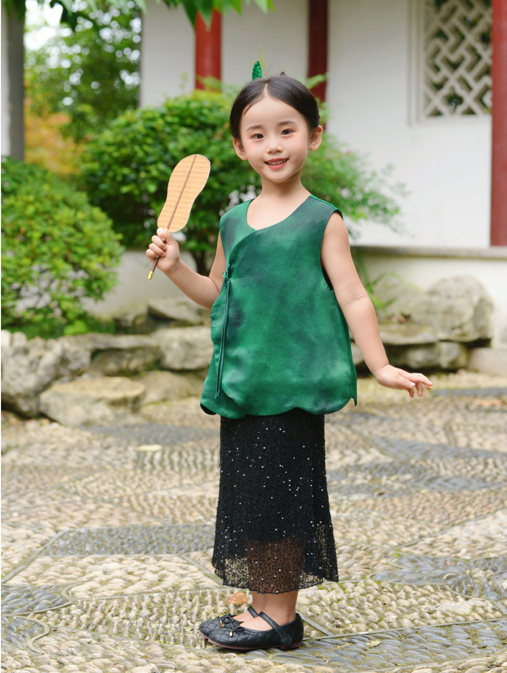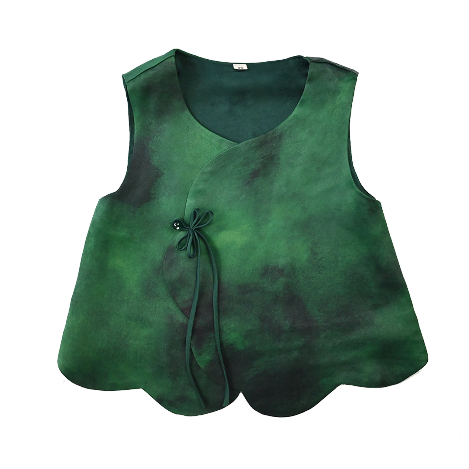 새로운 중국 스타일 다크 그린 세트 용 수직 칼라가있는 민소매 조끼 2024 여성 여름 복고풍 수정 당나라 원피스 조끼스토어 가기
