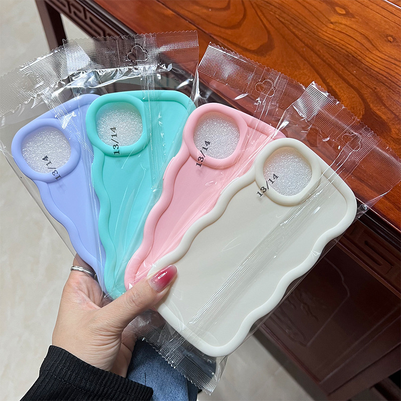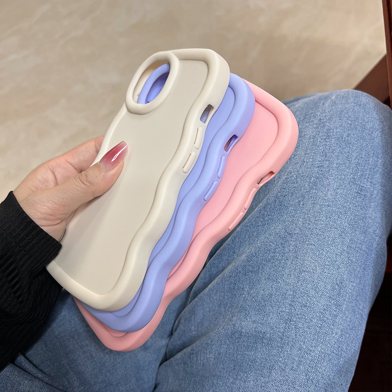 iPhone16 휴대폰 케이스 13/17 캔디 컬러 대형 구멍 PRO 소프트 케이스 도매에 적합한 새로운 마카롱 대형 웨이브
