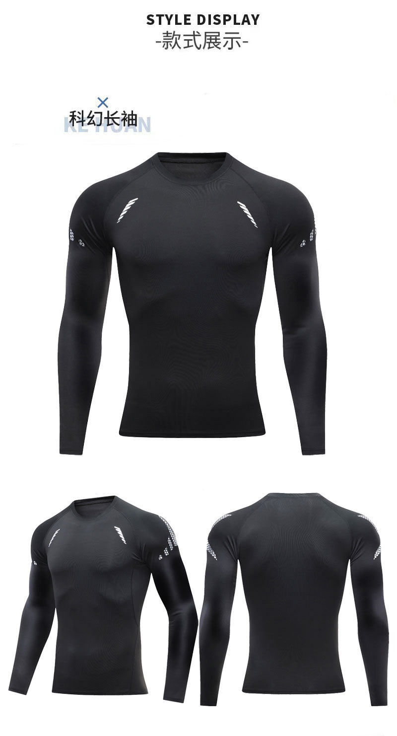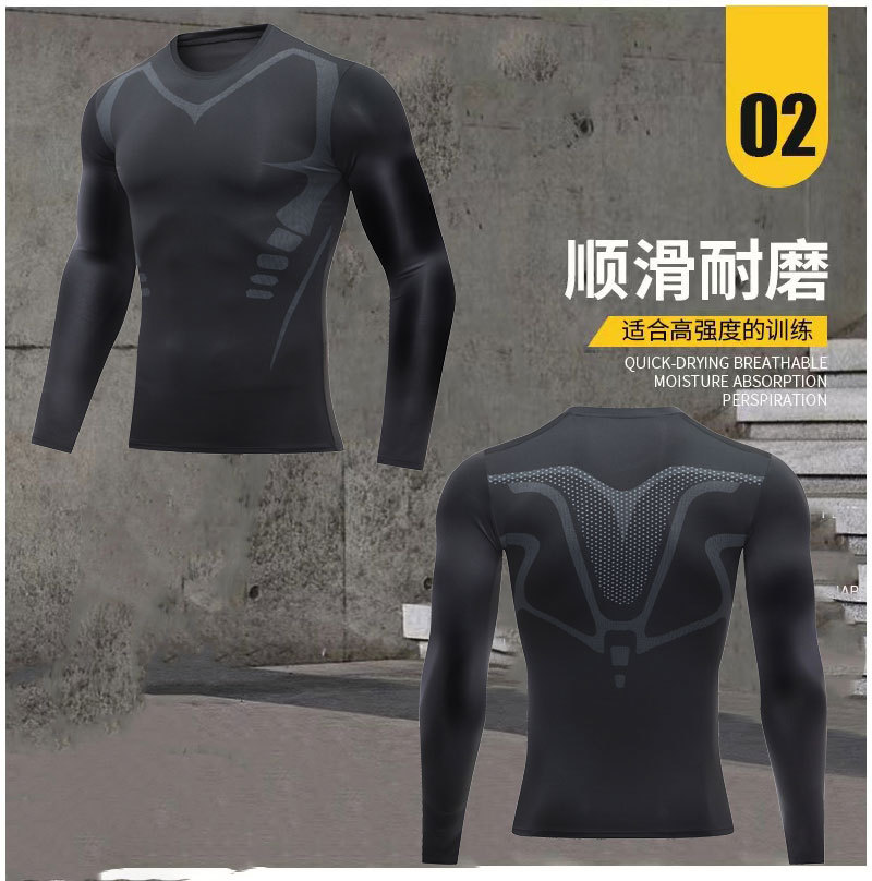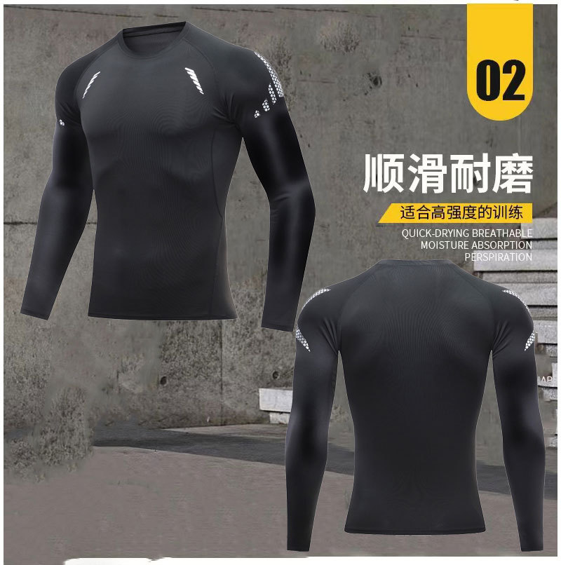 스포츠 스타킹 남성 여름 빠른 건조 티셔츠 높은 탄성 압축 훈련 의류 통기성 긴 소매 달리기 피트니스 의류