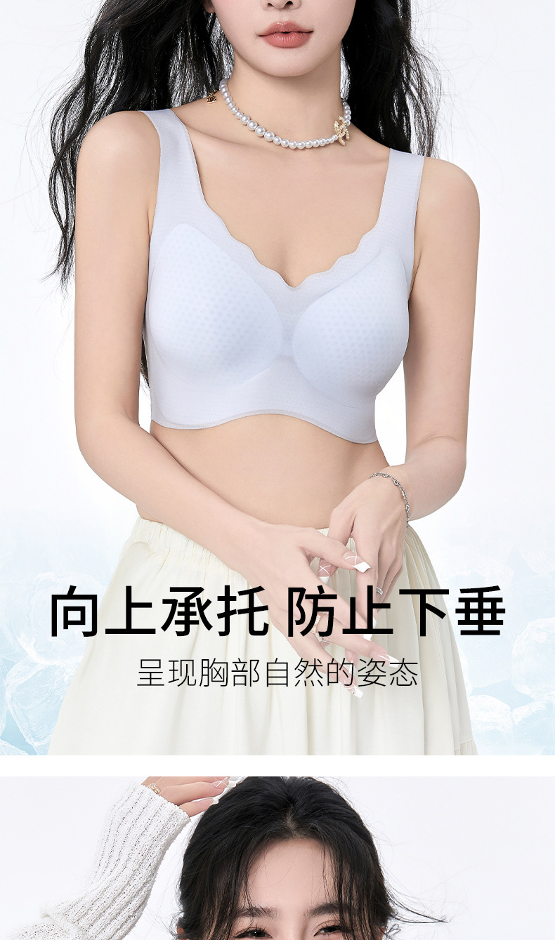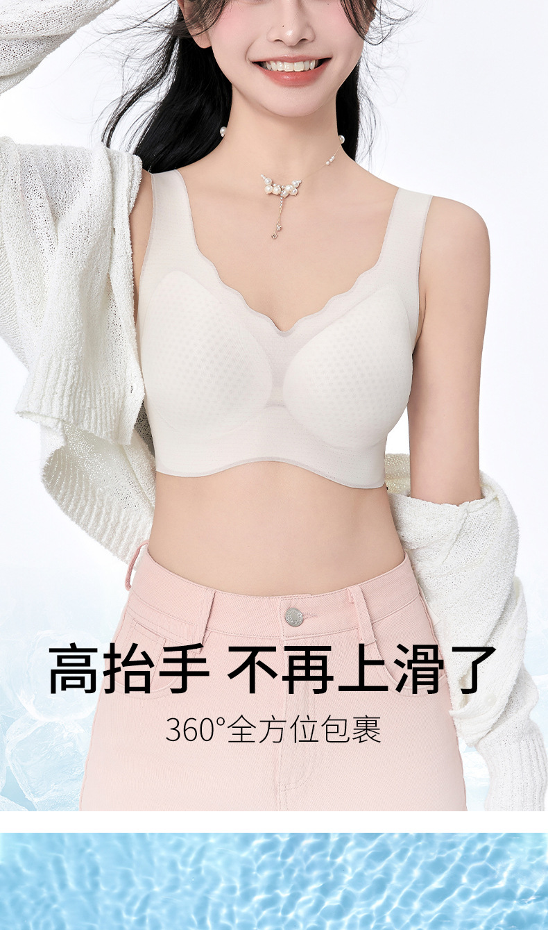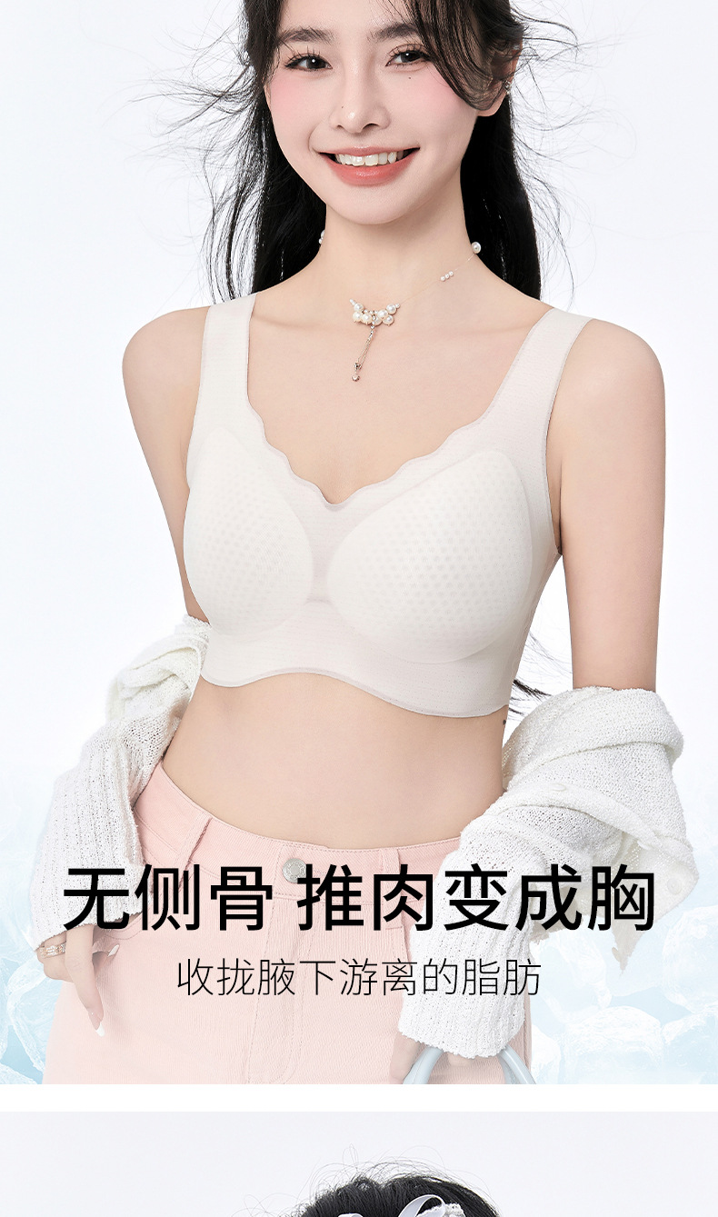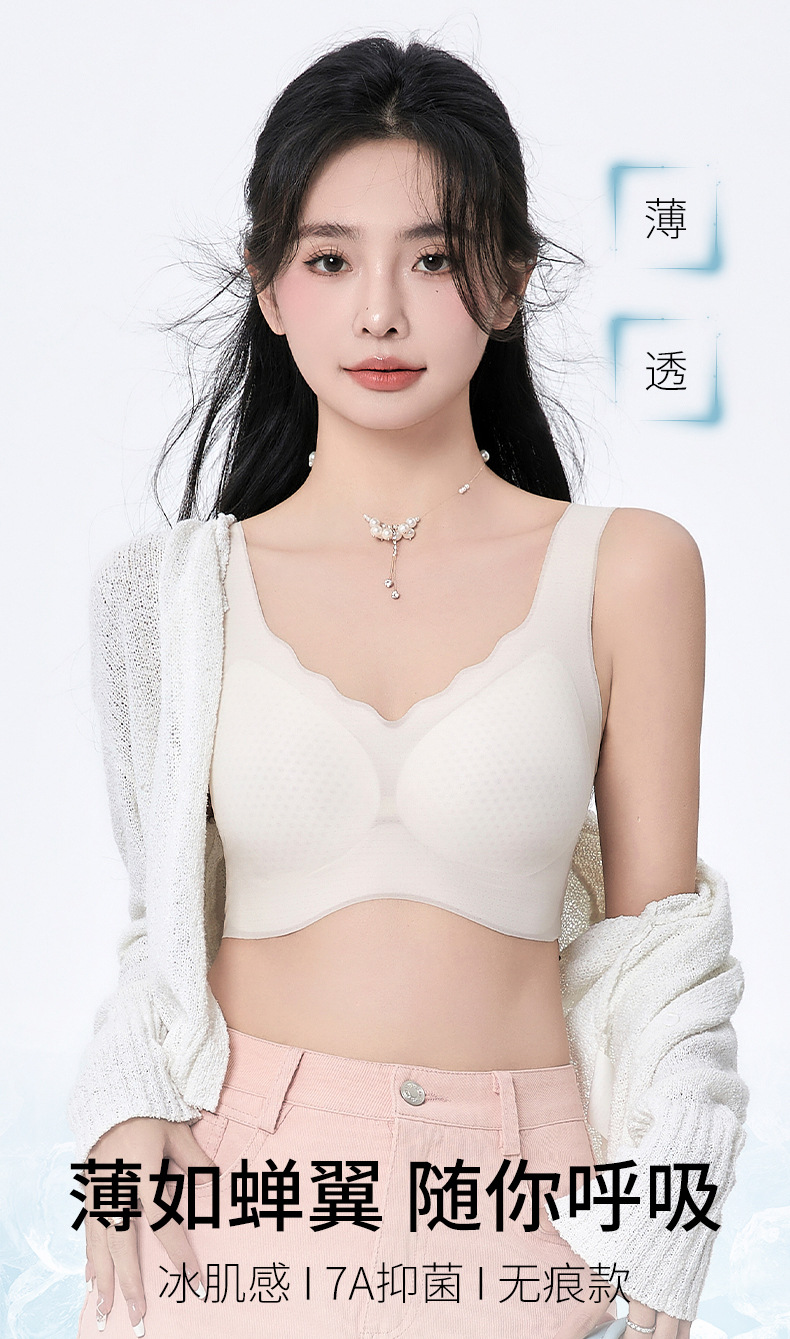 여름 쿨 울트라 얇은 아이스 실크 속옷 여성의 큰 가슴 작은 푸시 업 스포츠 조끼 얇은 노마크 아름다운 뒷브라스토어 가기
