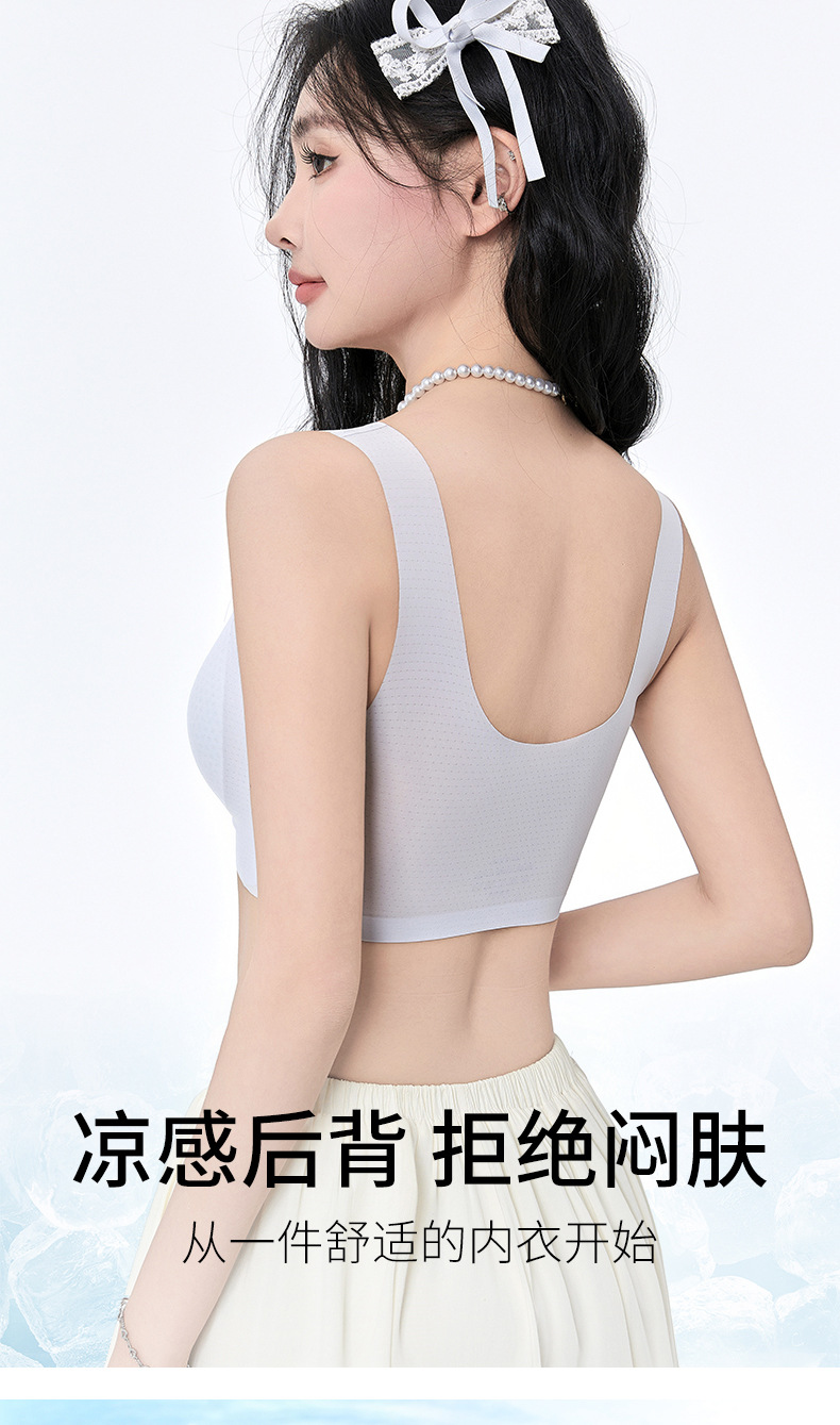 여름 쿨 울트라 얇은 아이스 실크 속옷 여성의 큰 가슴 작은 푸시 업 스포츠 조끼 얇은 노마크 아름다운 뒷브라
