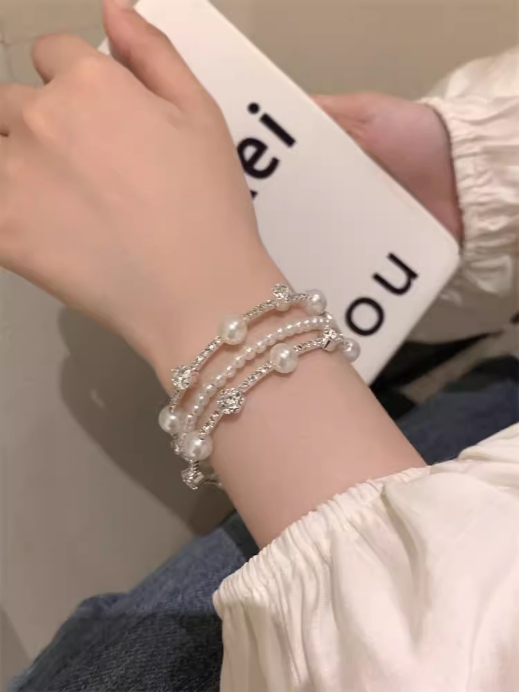 • 진주 다이아몬드 라이트 럭셔리 팔찌-S529 실버