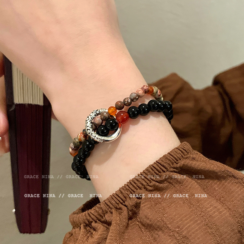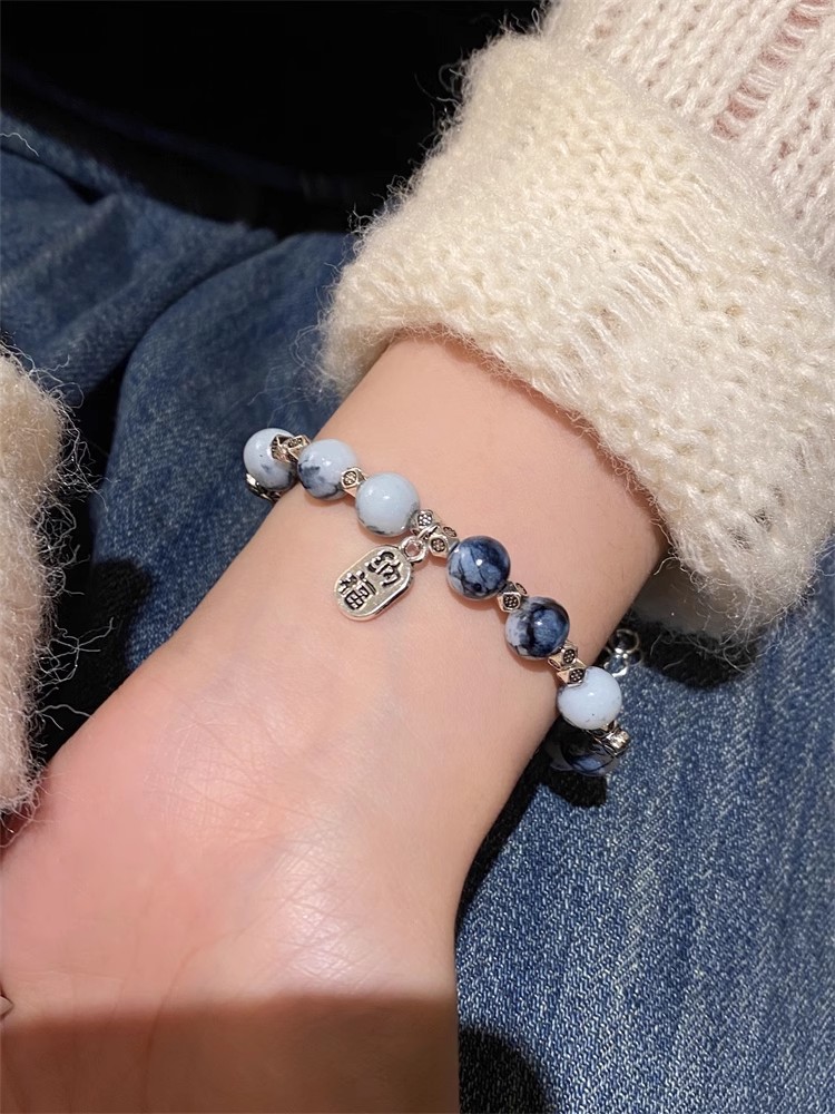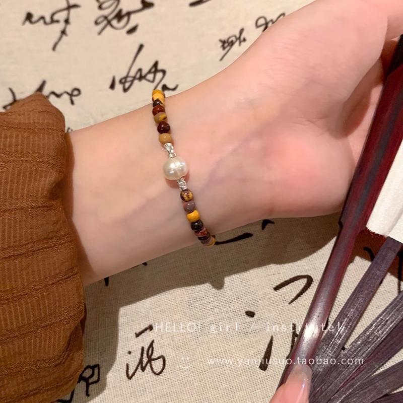 • Guochao 숯불 고양이 발톱 모조 보리 팔찌-S543 화이트