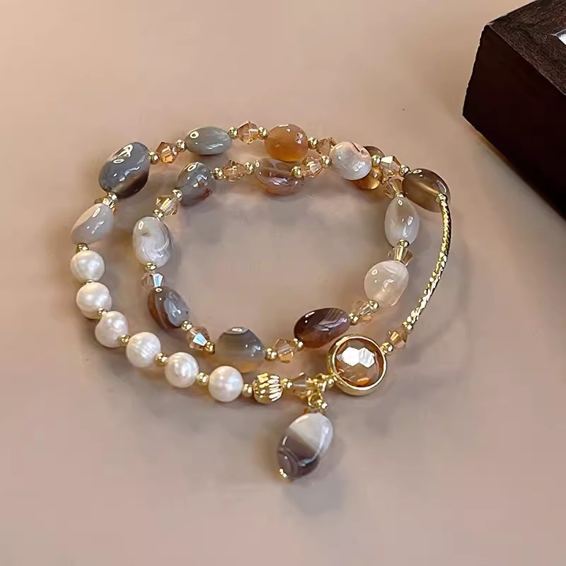 • 더블 레이어 모방 천연 진주 돌 bracelet-S447 골드