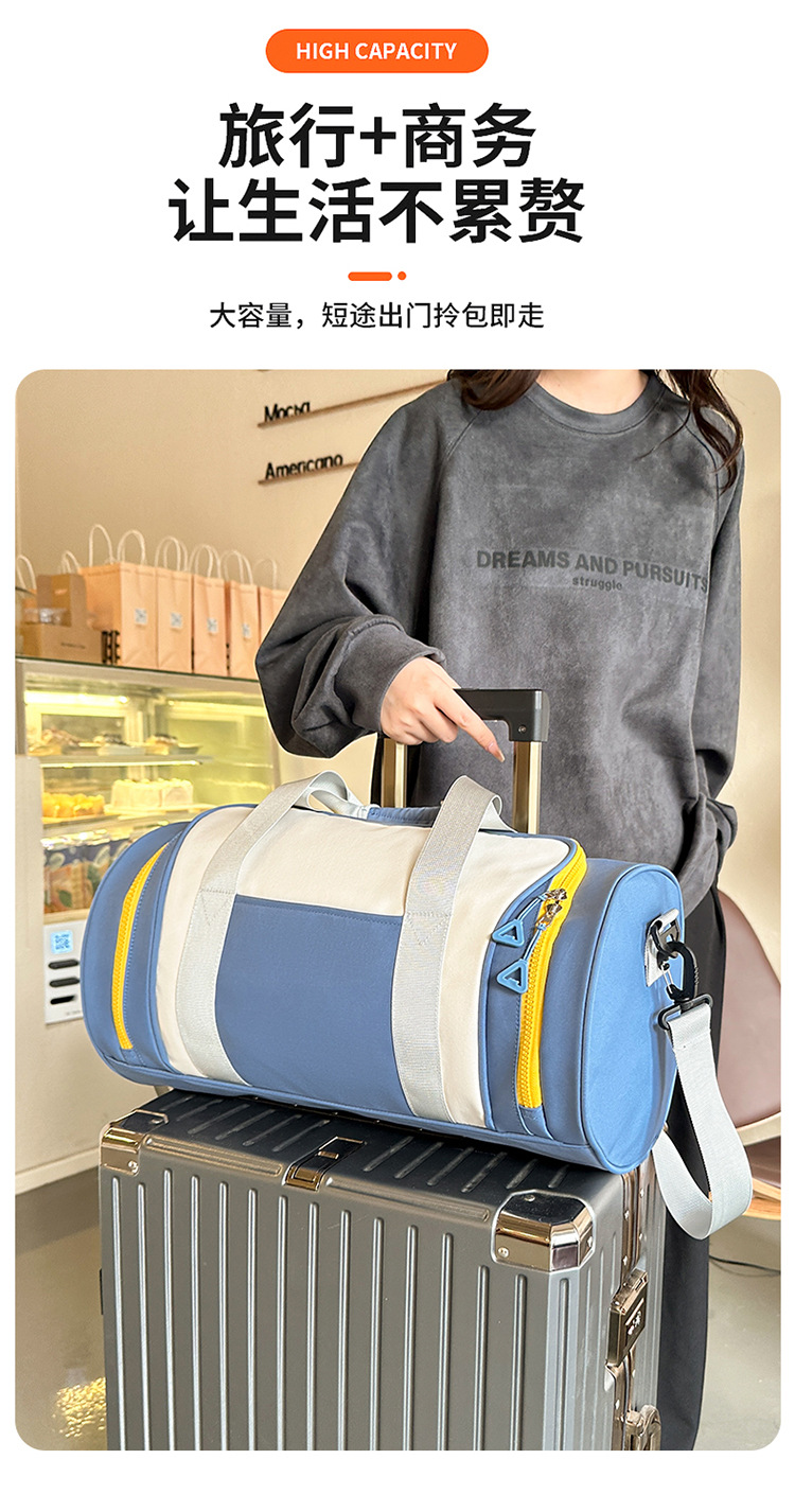 국경 간 단거리 여행 가방, 대용량 스포츠 피트니스 가방, 휴대용 수하물 가방, 원통형 남녀 공용 가방, 배색 디자인
