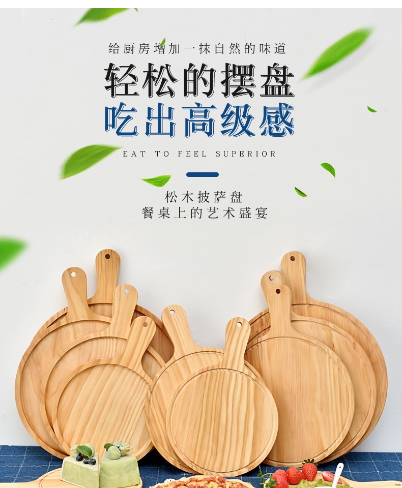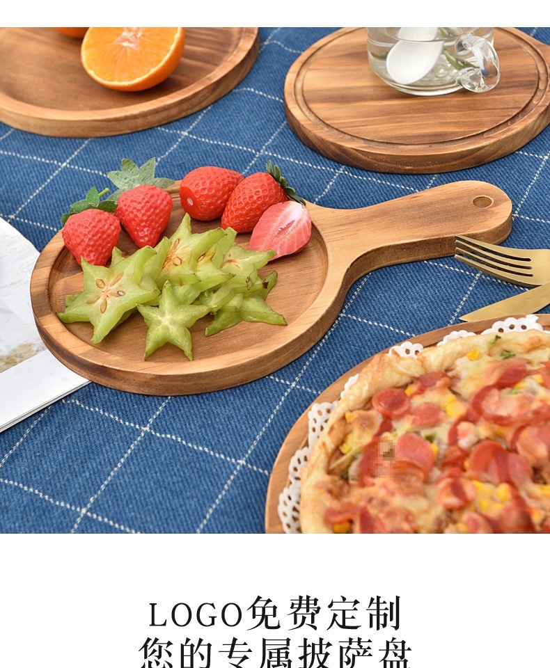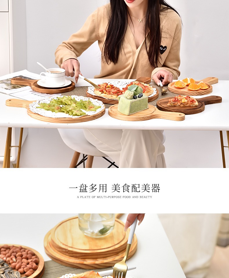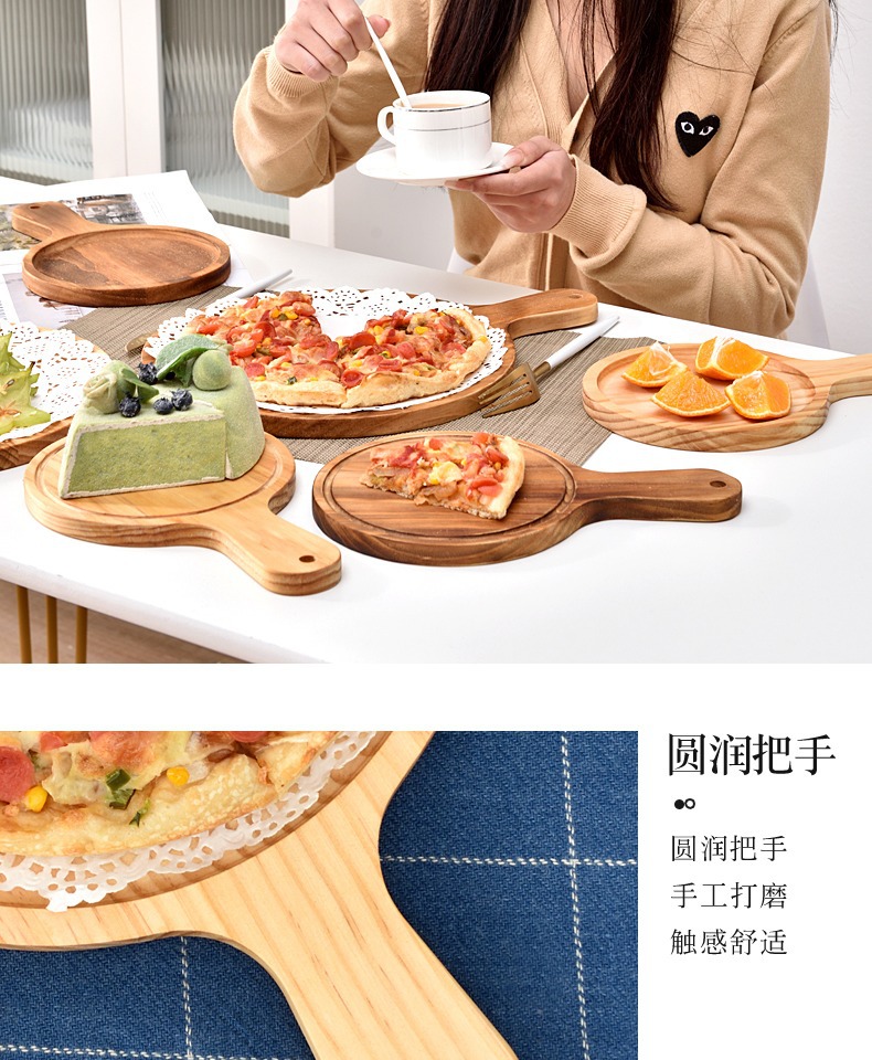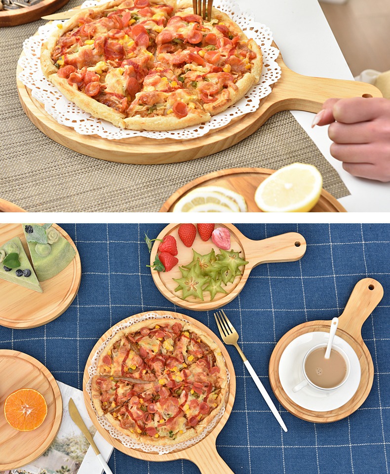 O & 피자 플레이트 나무 트레이 라운드 일본 스타일 솔리드 우드 스테이크 플레이트 케이크 플레이트 빵 케이크 플레이트 나무 트레이스토어 가기