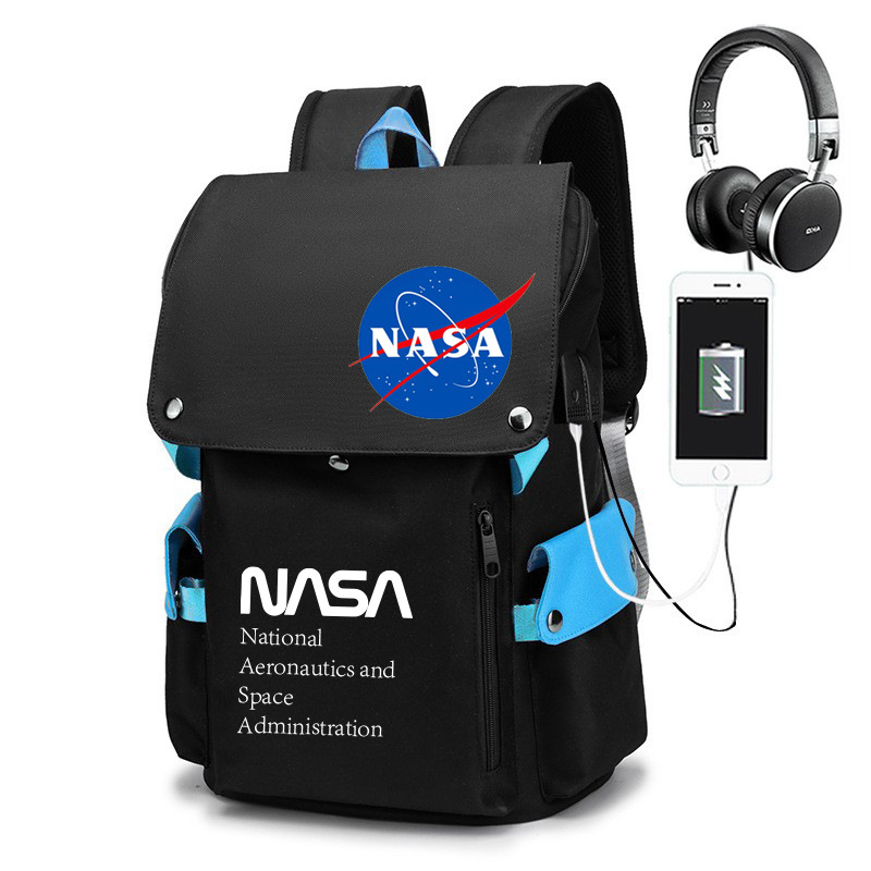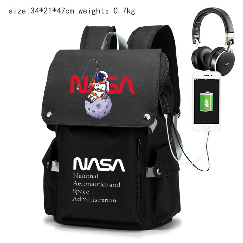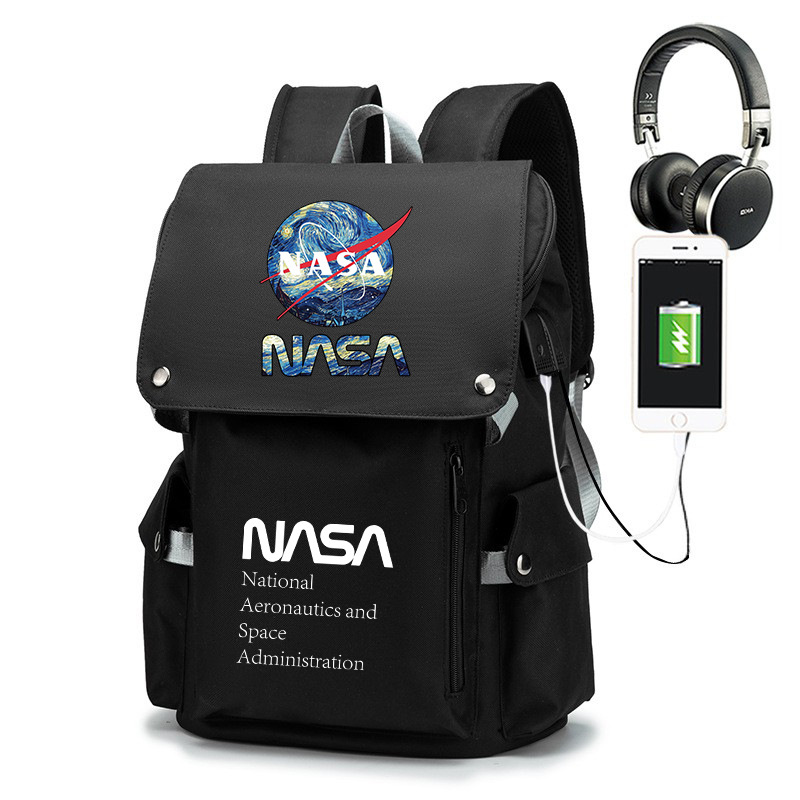 NASA 남녀 학생 학교 가방 도난 방지 대용량 배낭 남성 가방 15.6 인치 컴퓨터 가방
