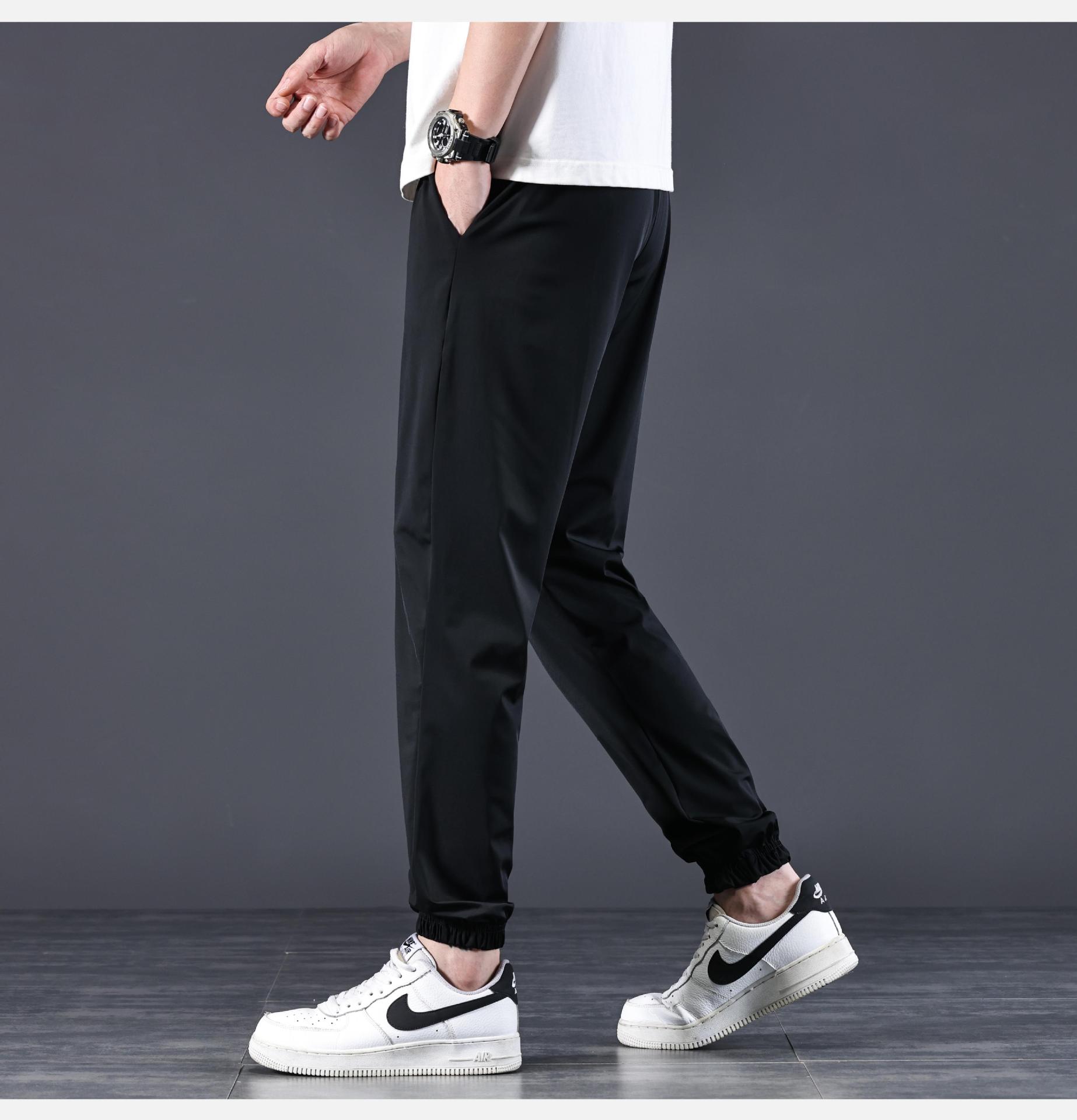 빠른 건조 아이스 실크 바지 남자 여름 플러스 사이즈 높은 스트레치 캐주얼 스포츠 바지 에어컨 바지 남자 발목 묶은 바지 얇은스토어 가기