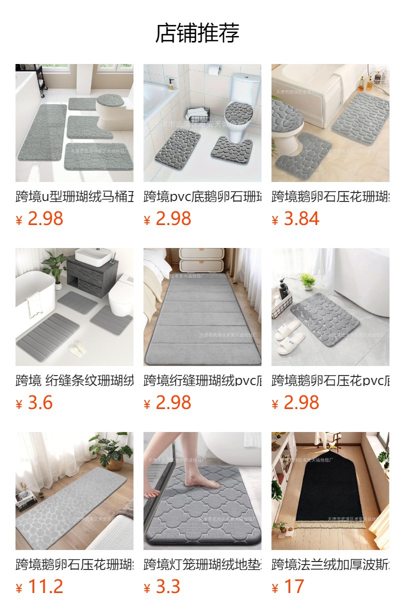 국경 줄무늬 퀼트 산호 양털 바닥 매트 공장 도매 욕실 바닥 매트 테무 아마존 24 시간 배달스토어 가기