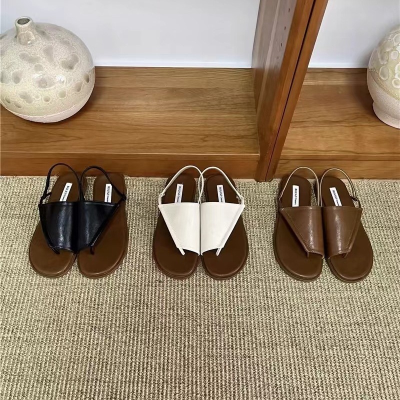봄과 가을 2024 새로운 패션 올 매치 플랫 니치 프렌치 레트로 발가락 샌들 여성 비치 로마 신발스토어 가기