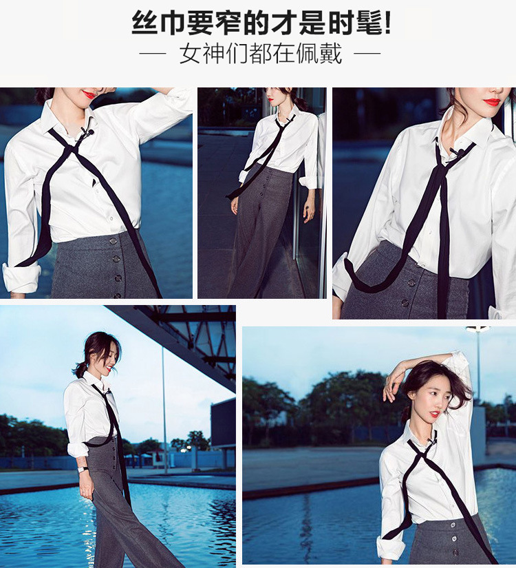 국경 간 Tmall Taobao 단색 날씬한 좁은 스카프 여성용 스카프 작은 스카프 벨트 헤어 타이 리본 리본스토어 가기