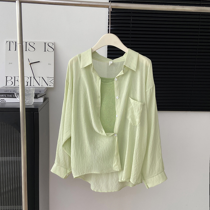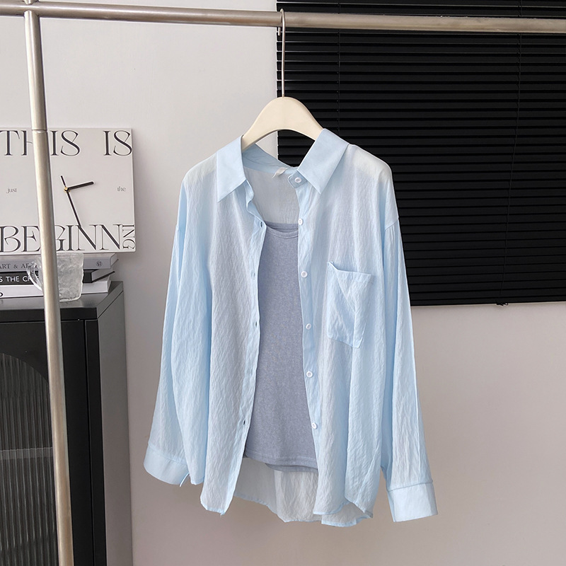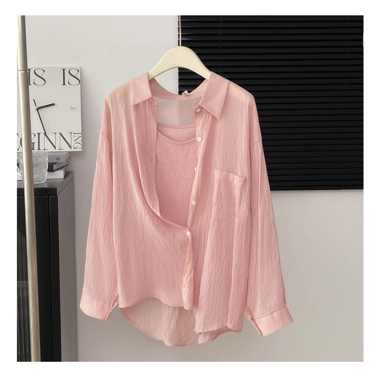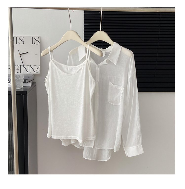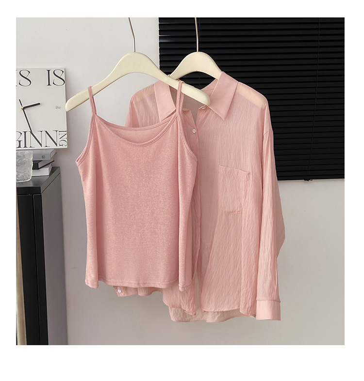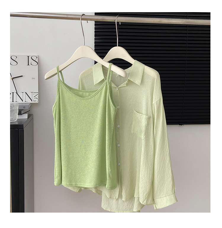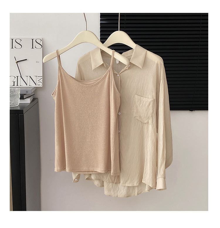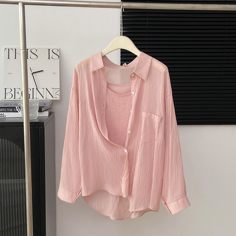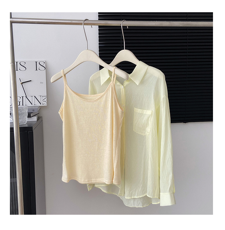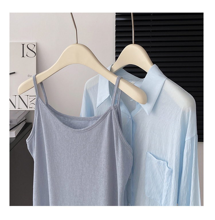 리얼 샷 프랑스 선 스크린 텐셀 셔츠 여성의 여름 얇은 신선한 달콤한 탑 슬링 투피스 선스크린 셔츠