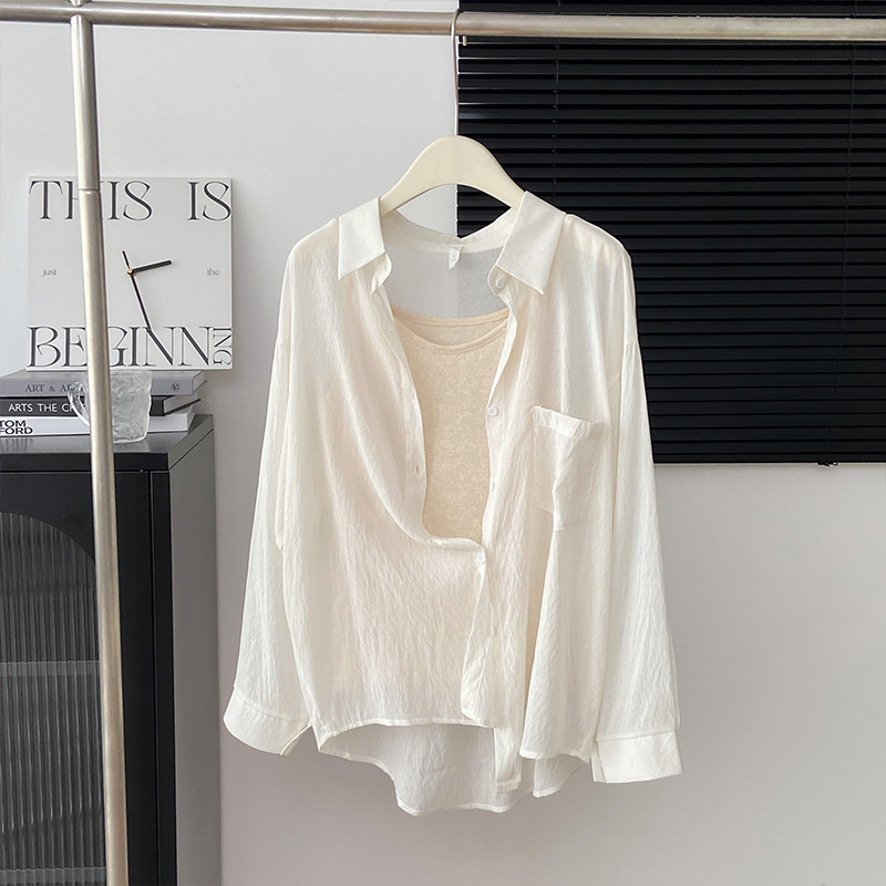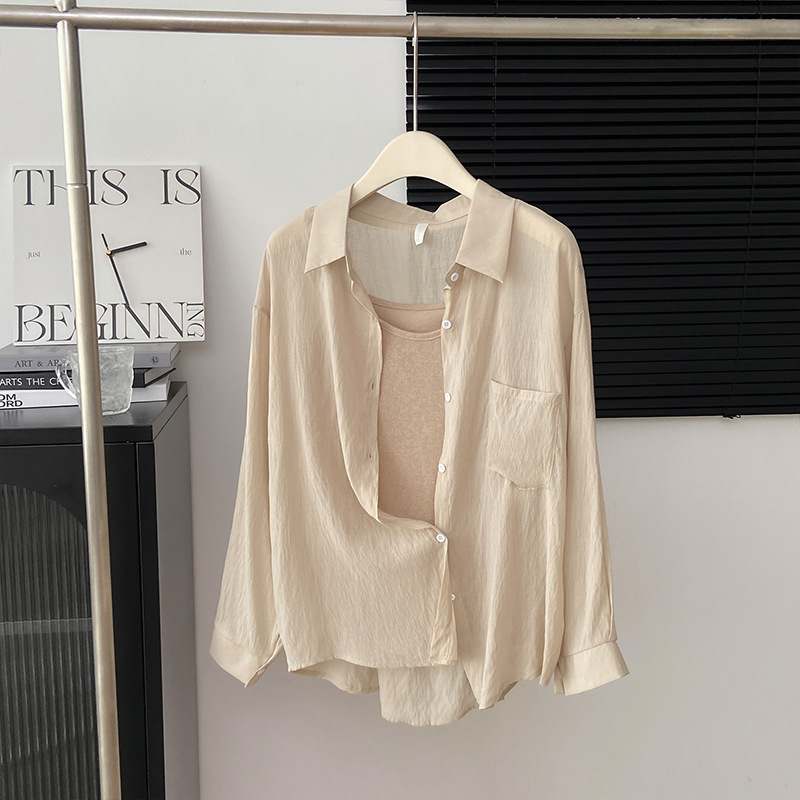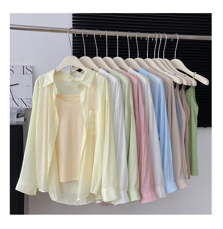 리얼 샷 프랑스 선 스크린 텐셀 셔츠 여성의 여름 얇은 신선한 달콤한 탑 슬링 투피스 선스크린 셔츠스토어 가기