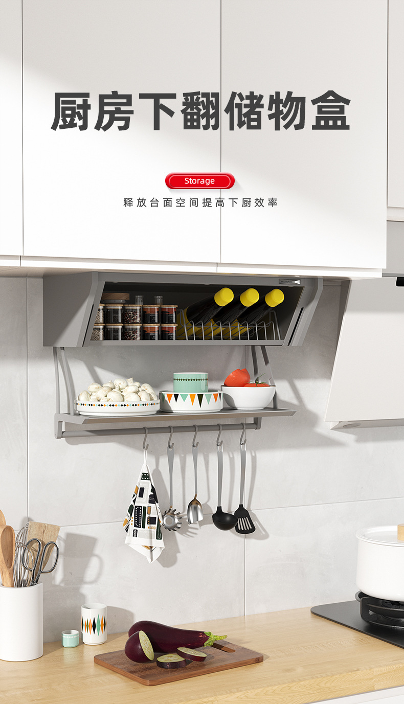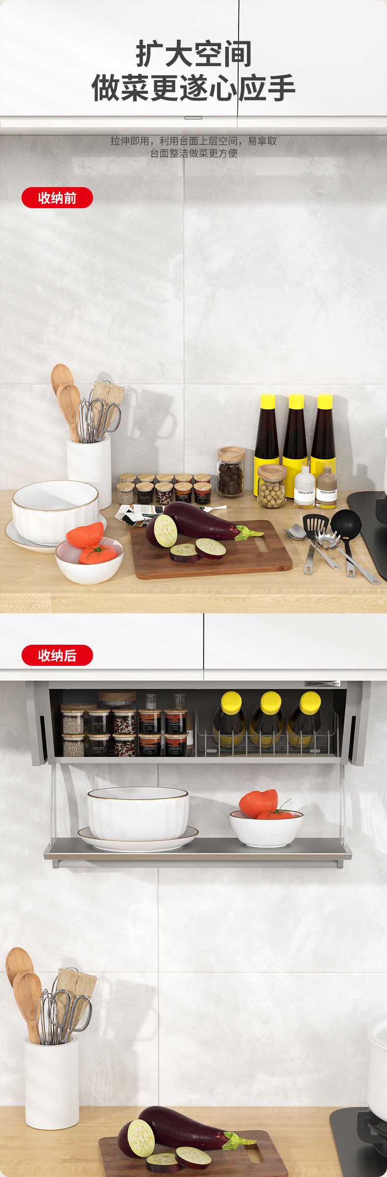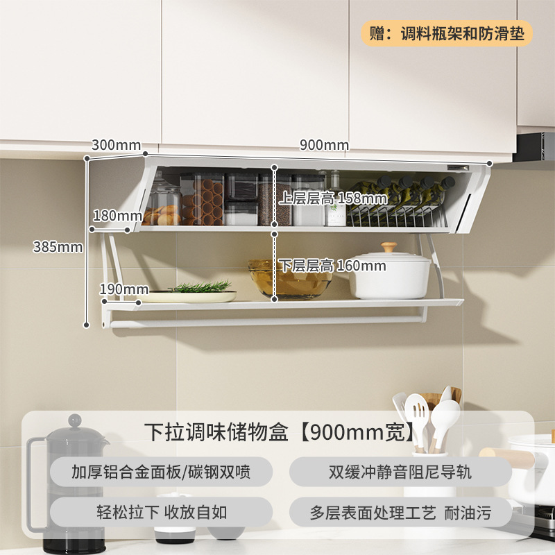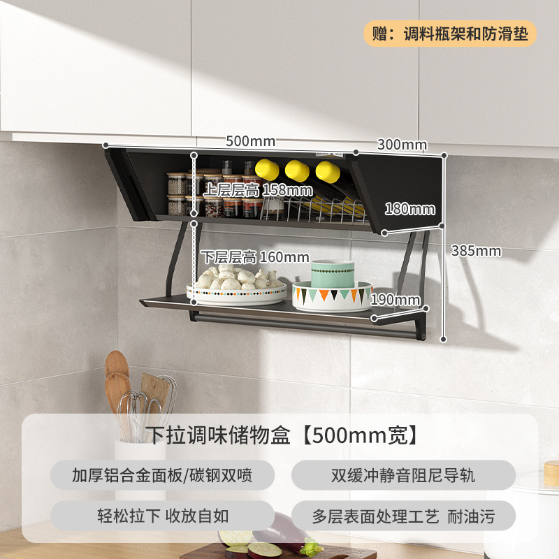 찬장 풀다운 수납함, 캐비닛 바닥에 숨겨진 조미료 상자, 풀다운 바구니, 주방 조리대 수납 선반, 이중 접이식스토어 가기