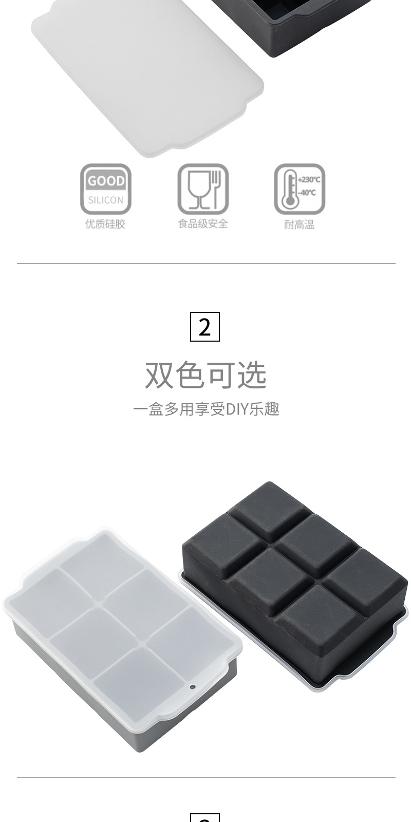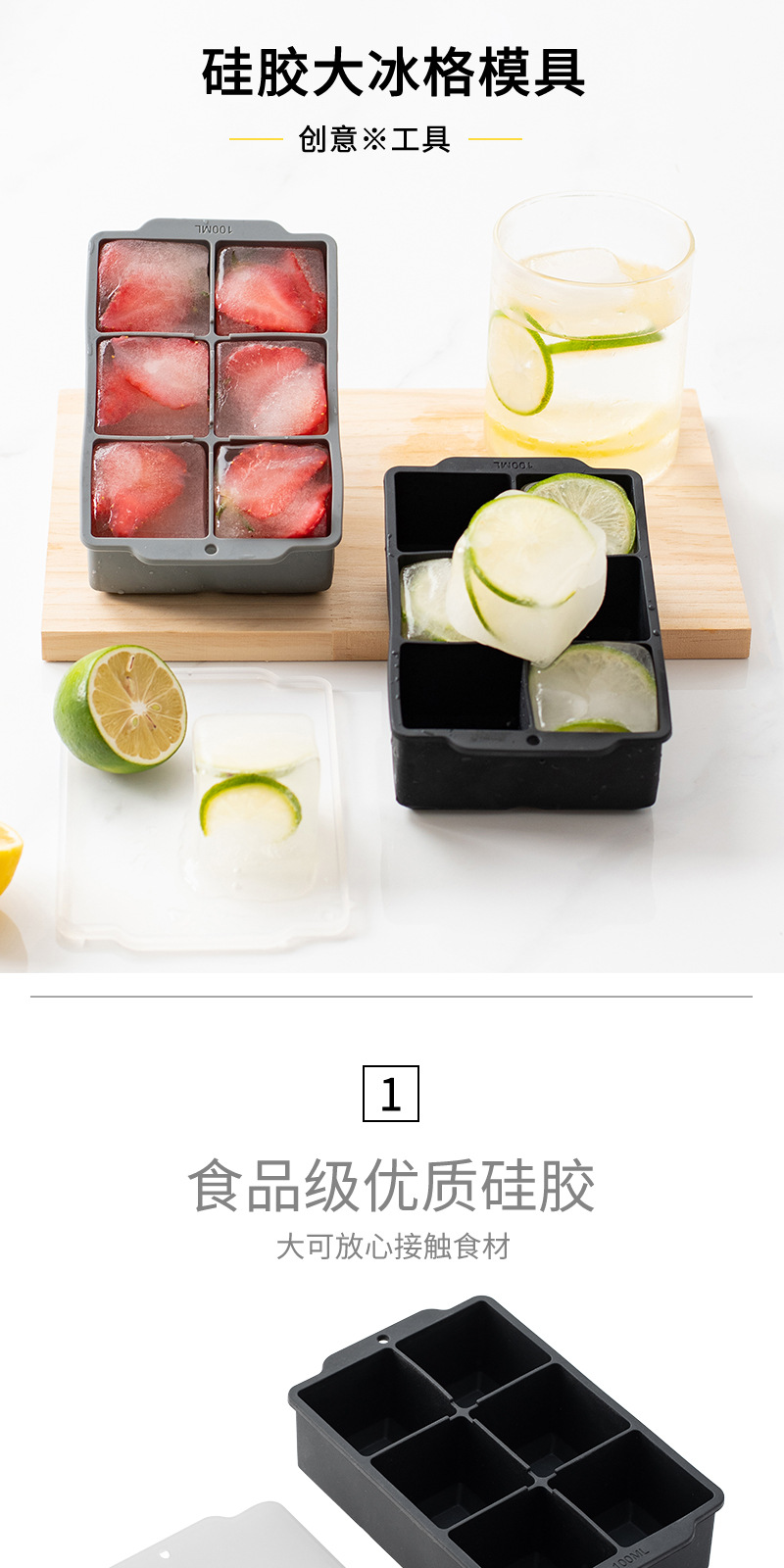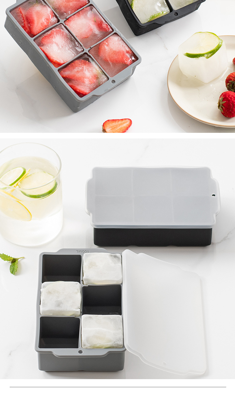 국경 6 그리드 사각형 실리콘 아이스 큐브 뚜껑 몰드 위스키 아이스 큐브 쉽게 demoulding