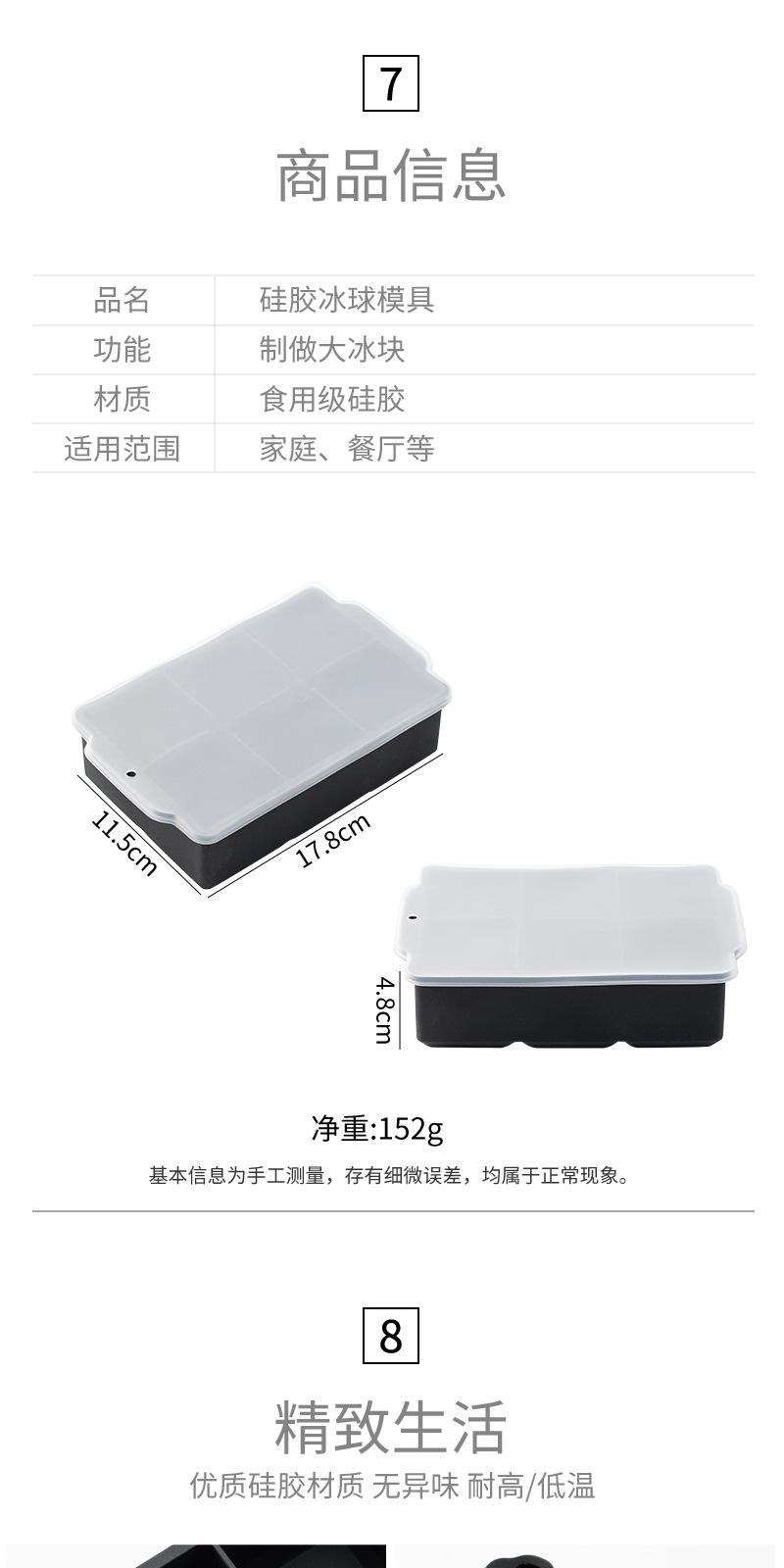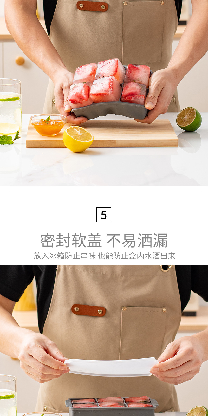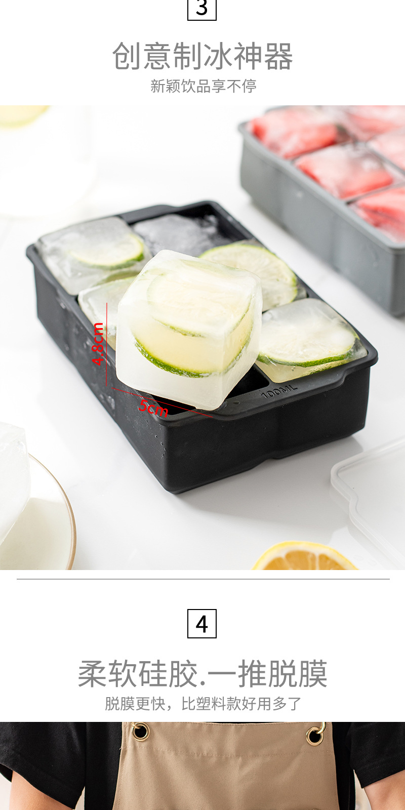 국경 6 그리드 사각형 실리콘 아이스 큐브 뚜껑 몰드 위스키 아이스 큐브 쉽게 demoulding