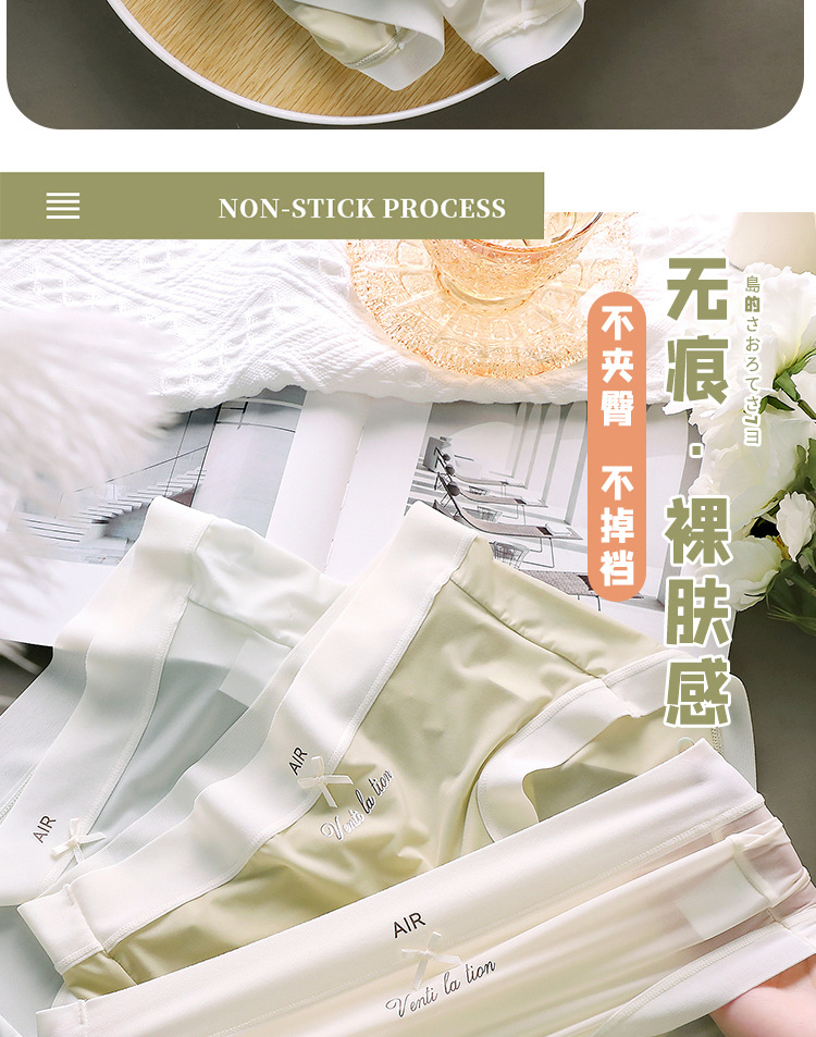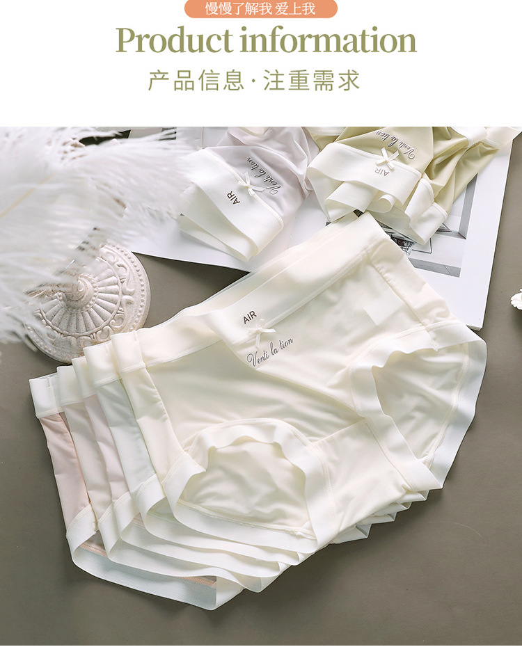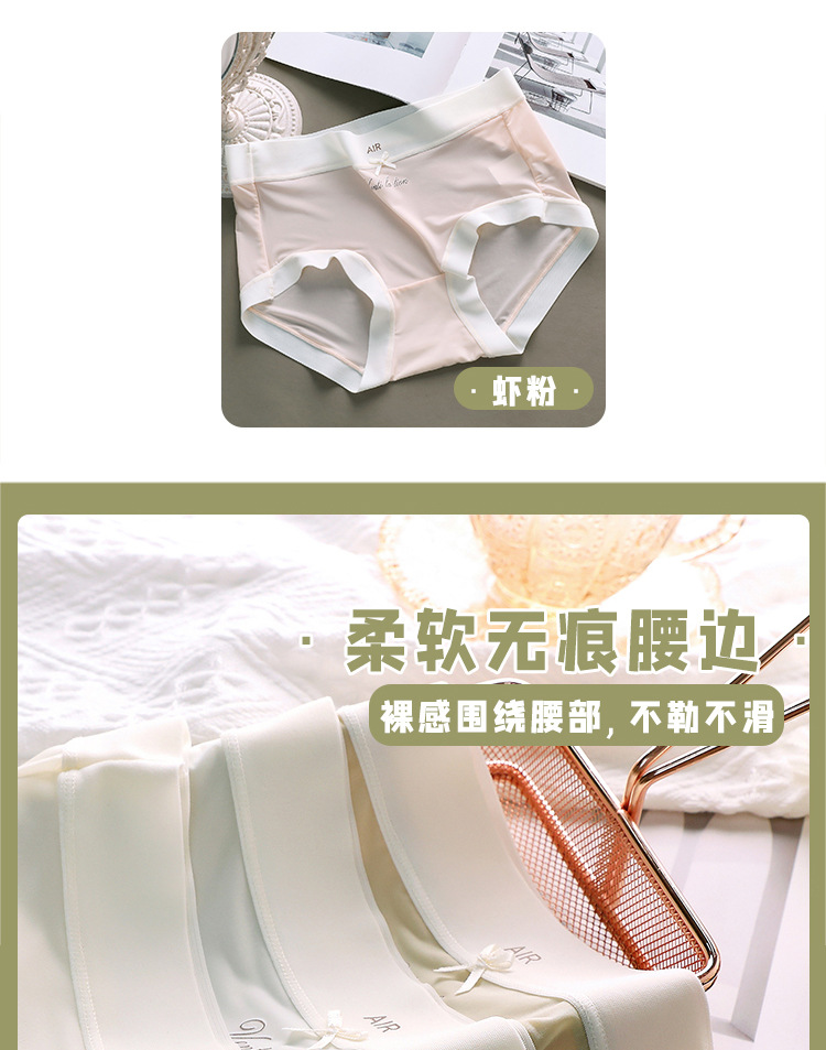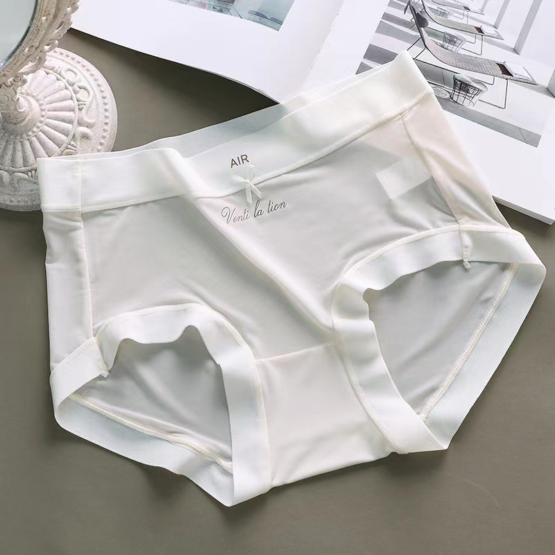 아이스 실크 속옷 여성용 퓨어 코튼 항균 크로트 새로운 추적없는 초박형 마스크 미드 웨이스트 소녀의 순수한 욕망 삼각형 반바지