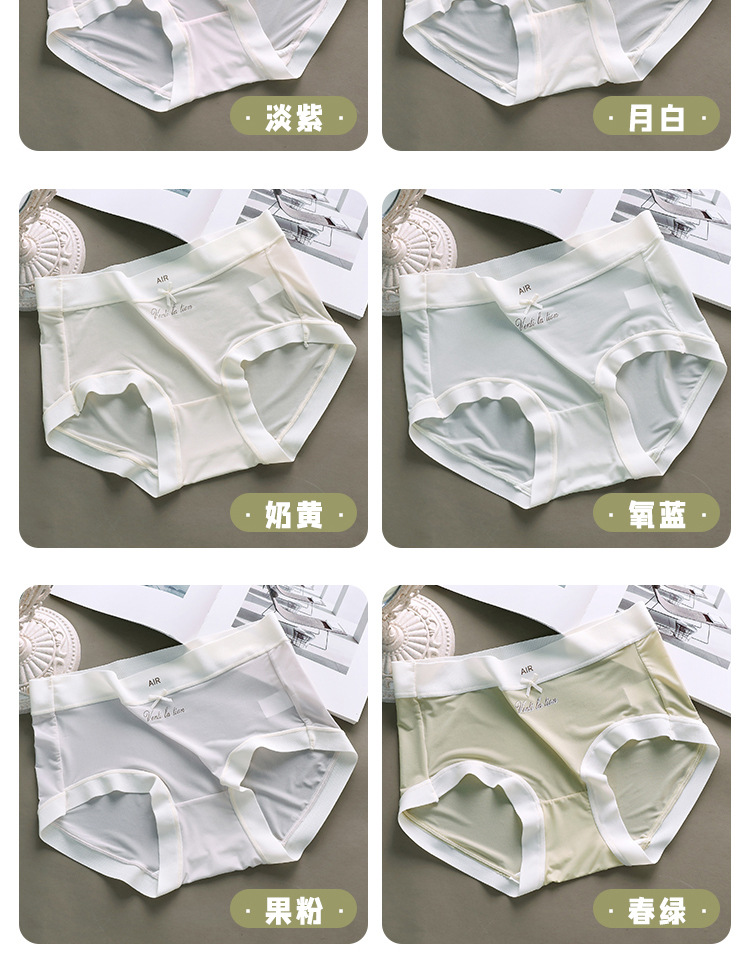 아이스 실크 속옷 여성용 퓨어 코튼 항균 크로트 새로운 추적없는 초박형 마스크 미드 웨이스트 소녀의 순수한 욕망 삼각형 반바지스토어 가기