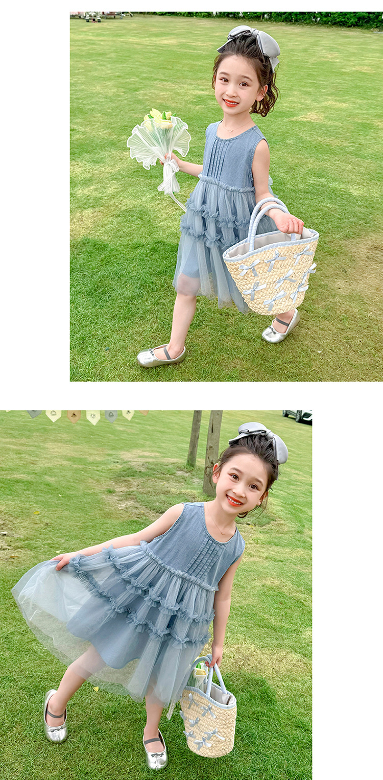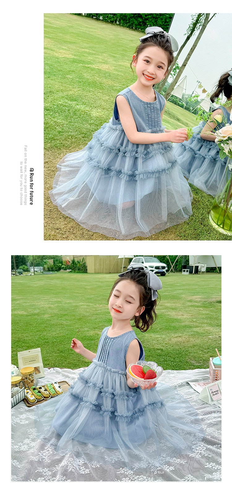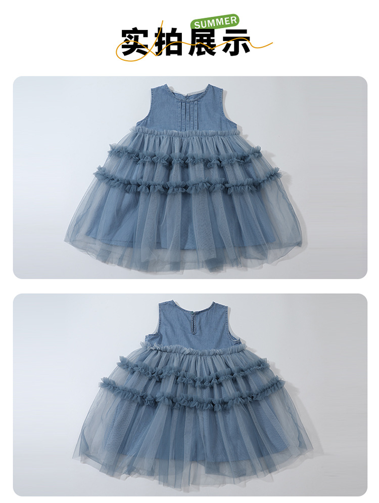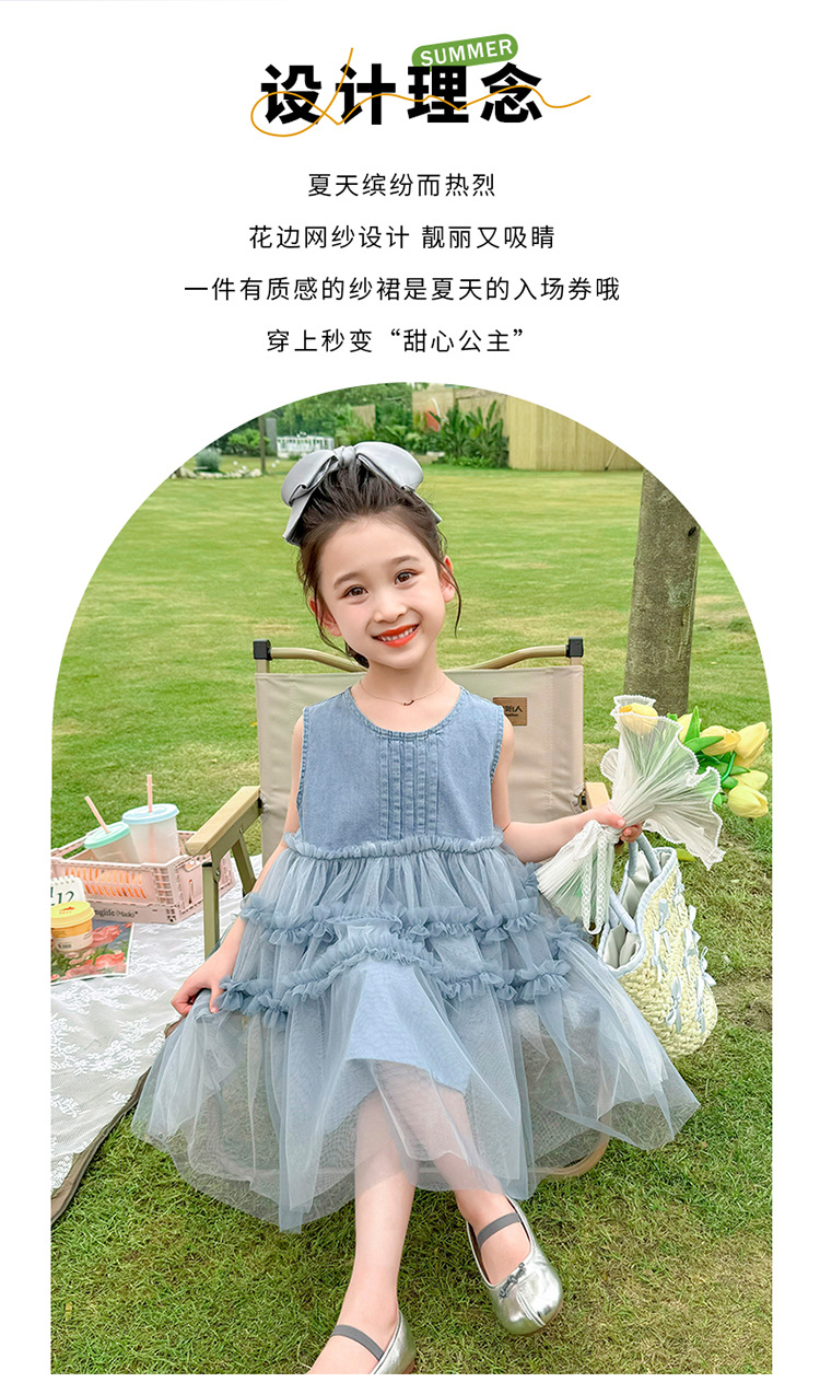 소녀 여름 원피스 2024 새로운 패션 어린 소녀 조끼 데님 거즈 스커트 어린이 달콤한 공주 스커트스토어 가기