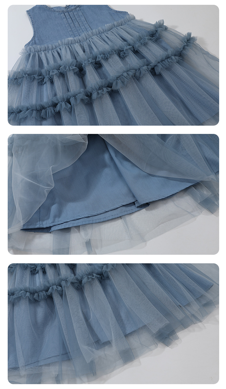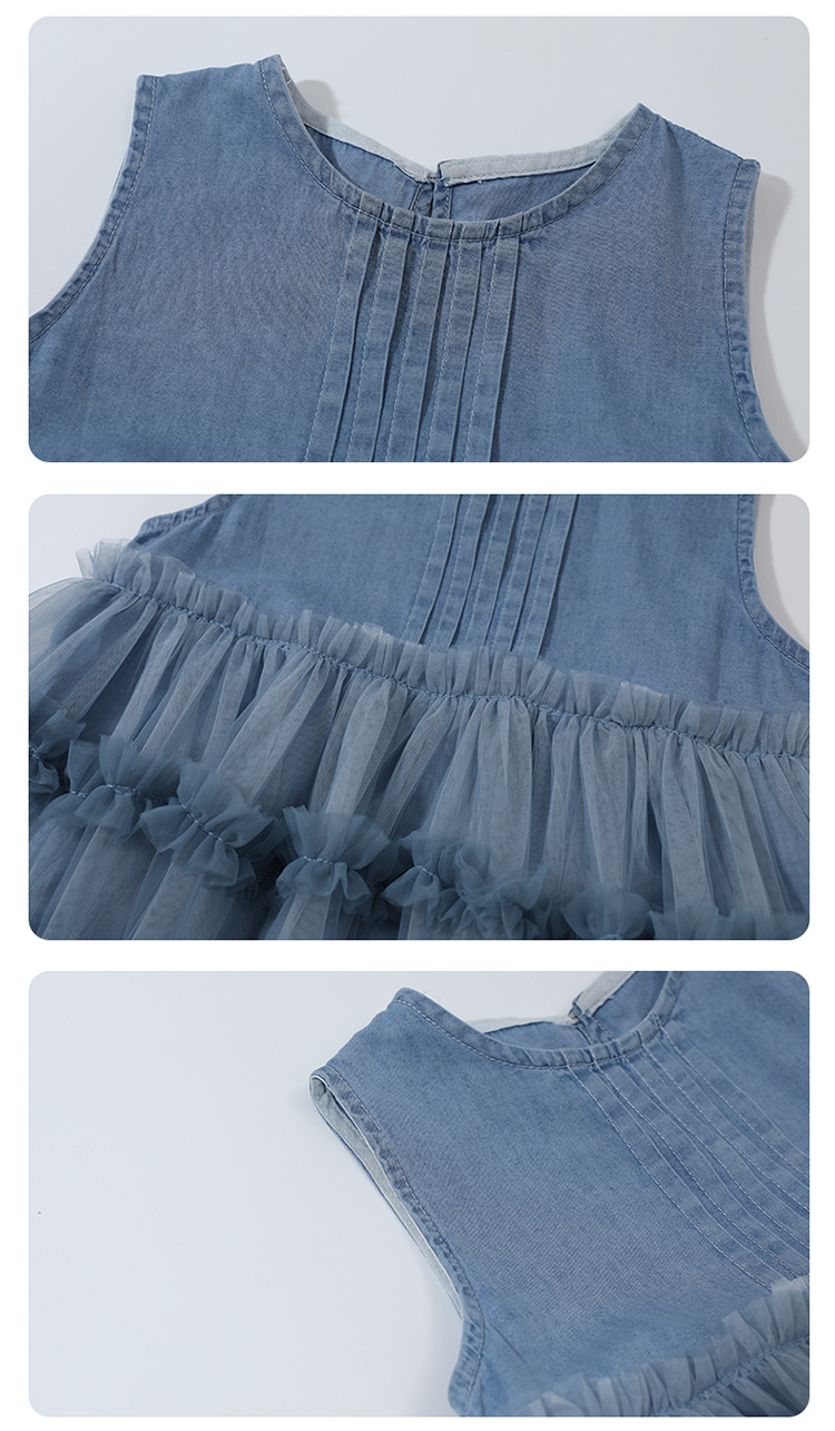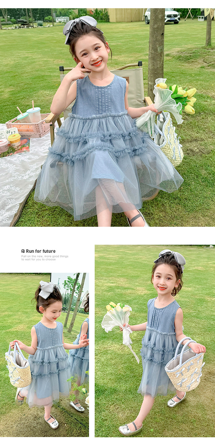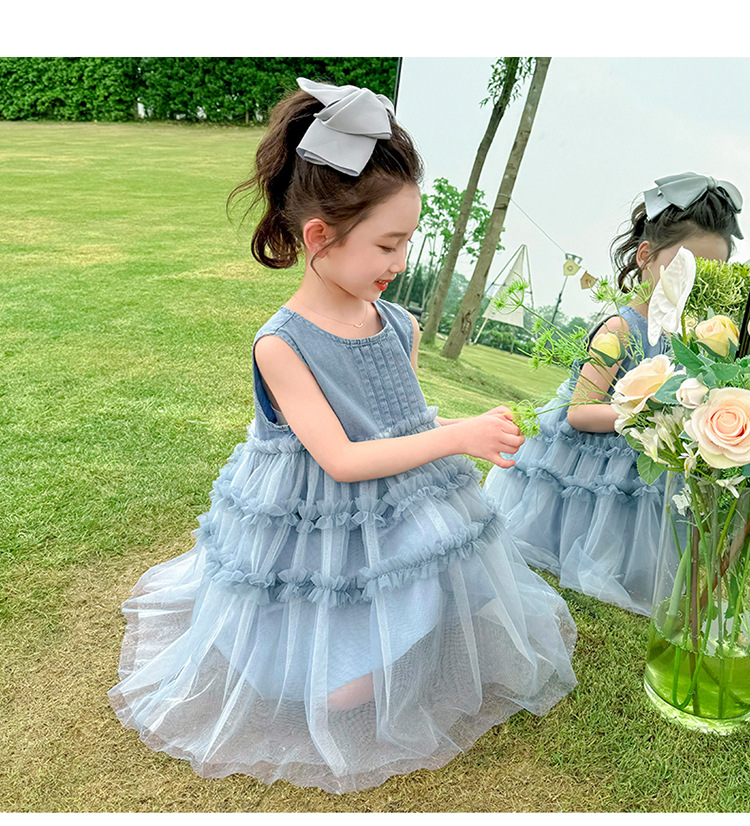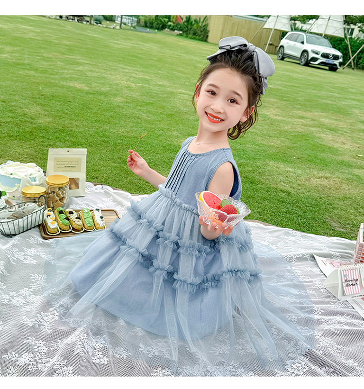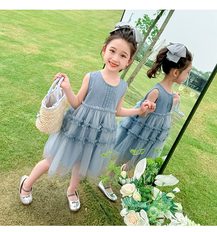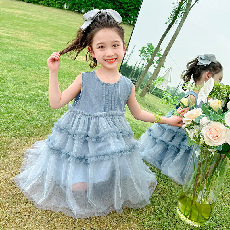 소녀 여름 원피스 2024 새로운 패션 어린 소녀 조끼 데님 거즈 스커트 어린이 달콤한 공주 스커트