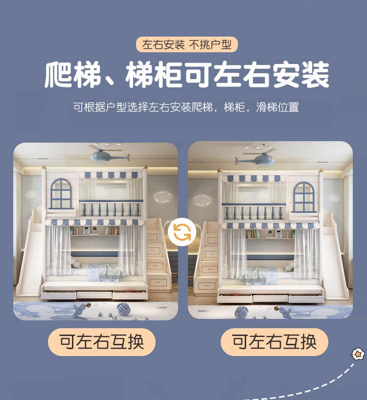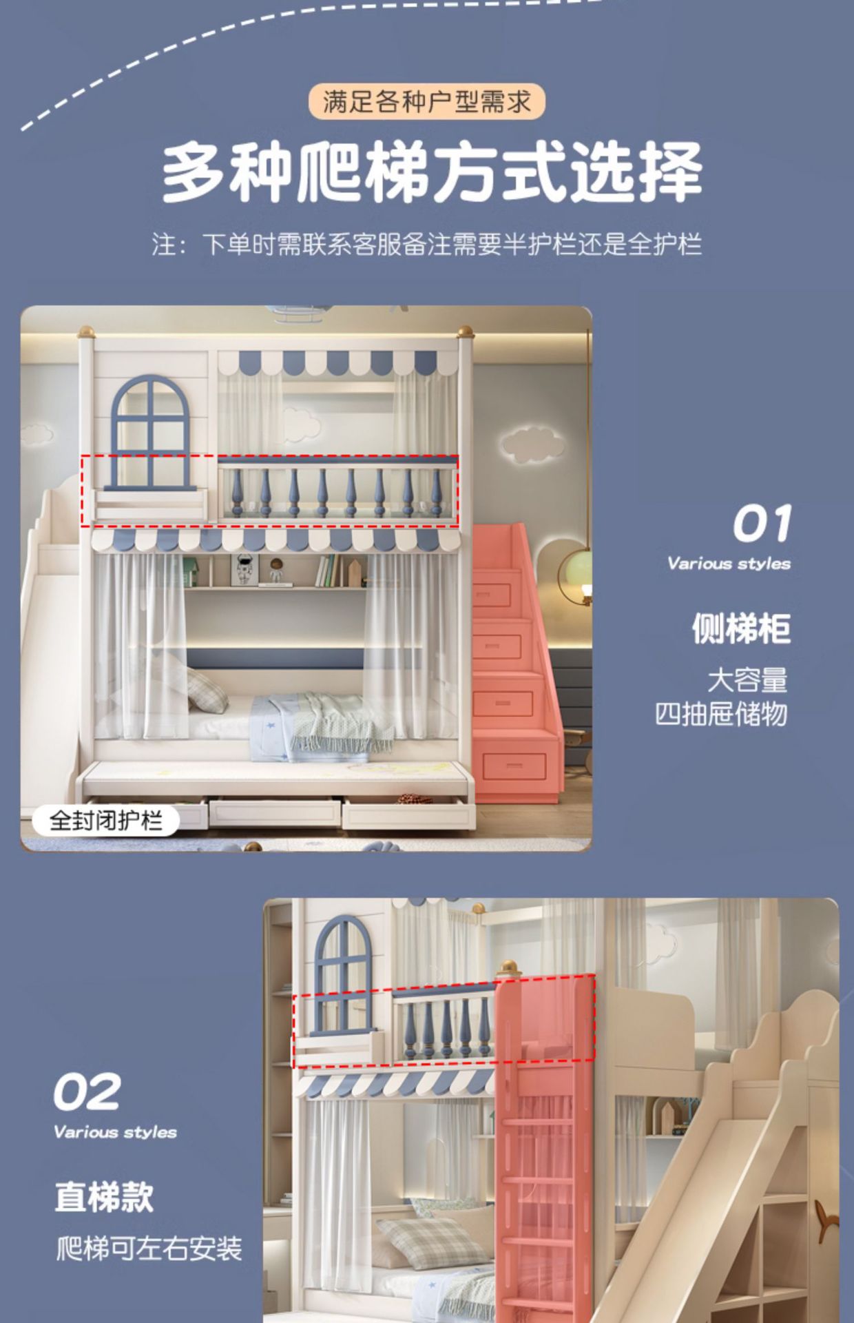 어린이용 이층침대, 병렬침대, 높낮이 조절 가능한 이층침대, 동일한 너비의 이층침대, 소형 가정용 슬라이드