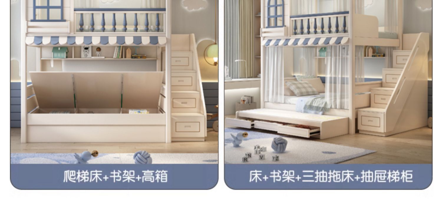어린이용 이층침대, 병렬침대, 높낮이 조절 가능한 이층침대, 동일한 너비의 이층침대, 소형 가정용 슬라이드스토어 가기