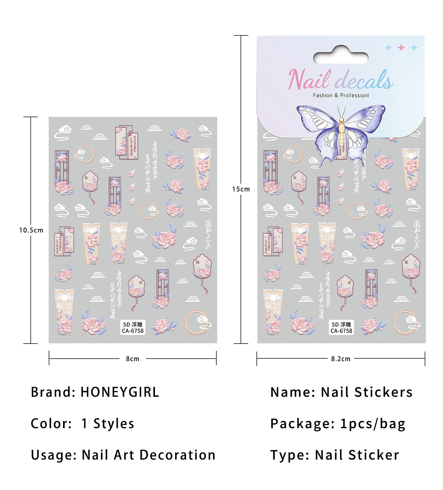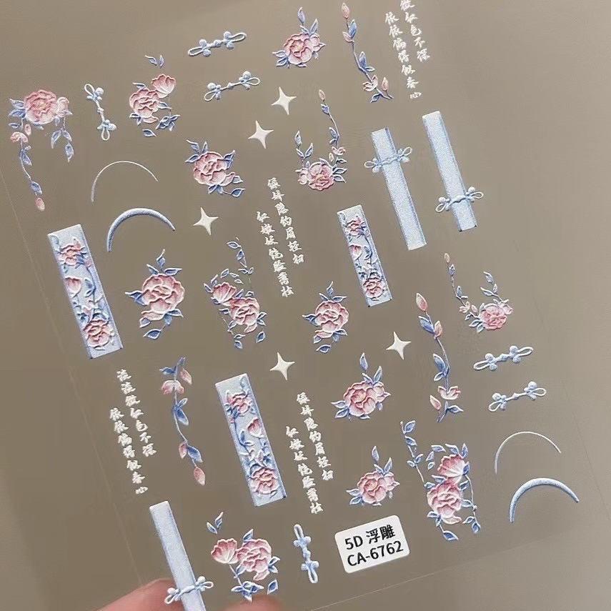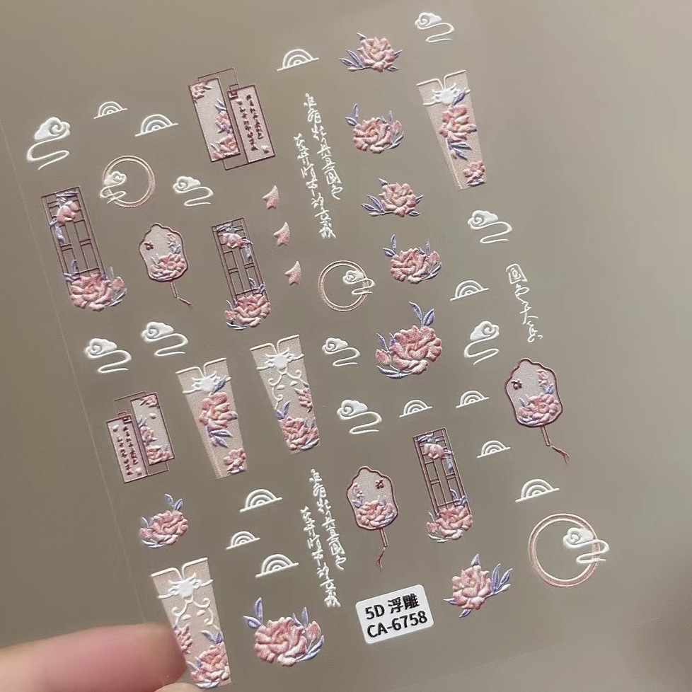 새로운 중국 스타일 꽃 네일 스티커 5D 양각 3 차원 골동품 진주 모란 꽃 네일 아트 스티커 쥬얼리 CA 스타일