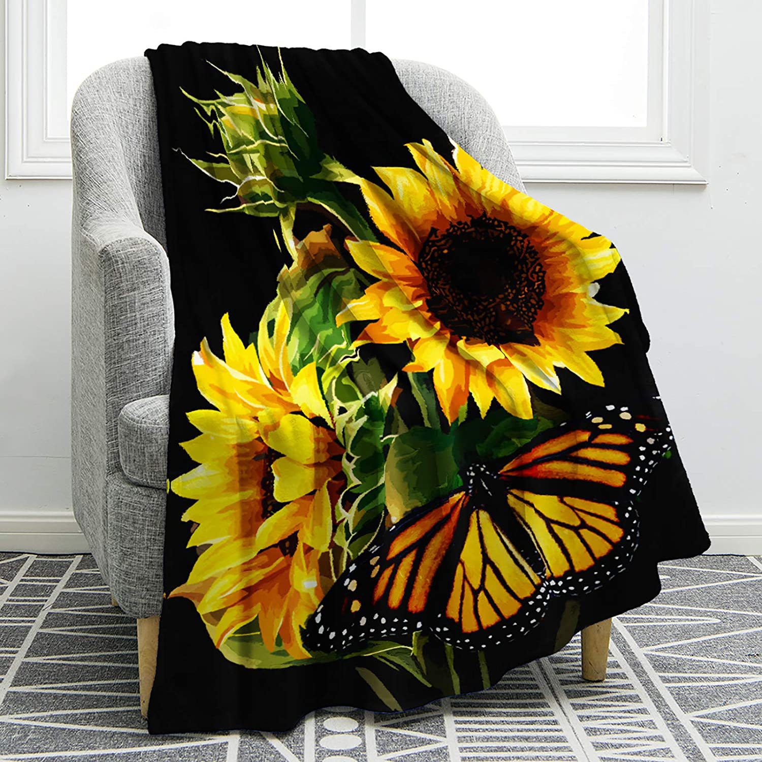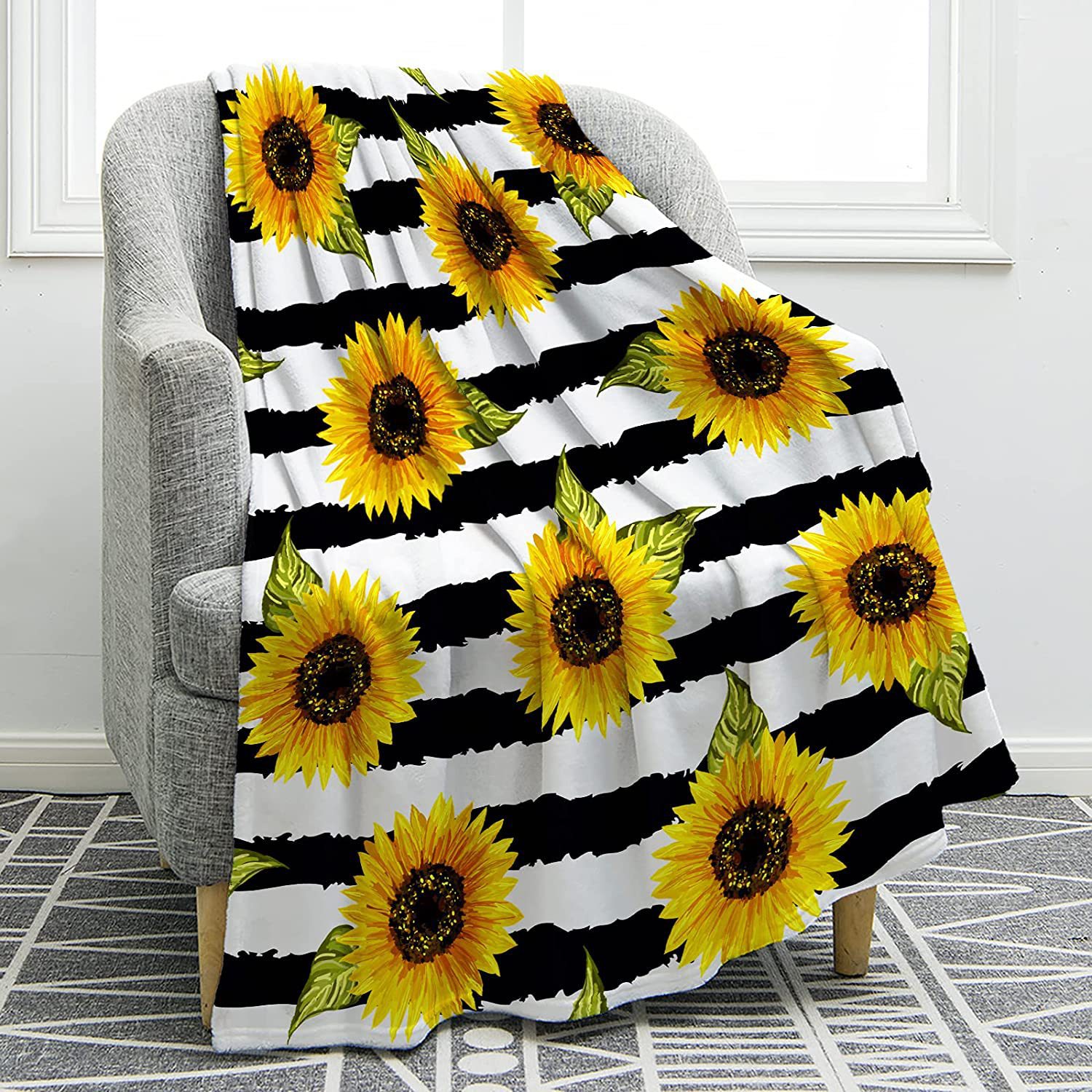 리 렌 홈 섬유 해바라기 커버 담요 담요 플란넬 양고기 인쇄 침대 소파 담요 숙녀 선물 도매