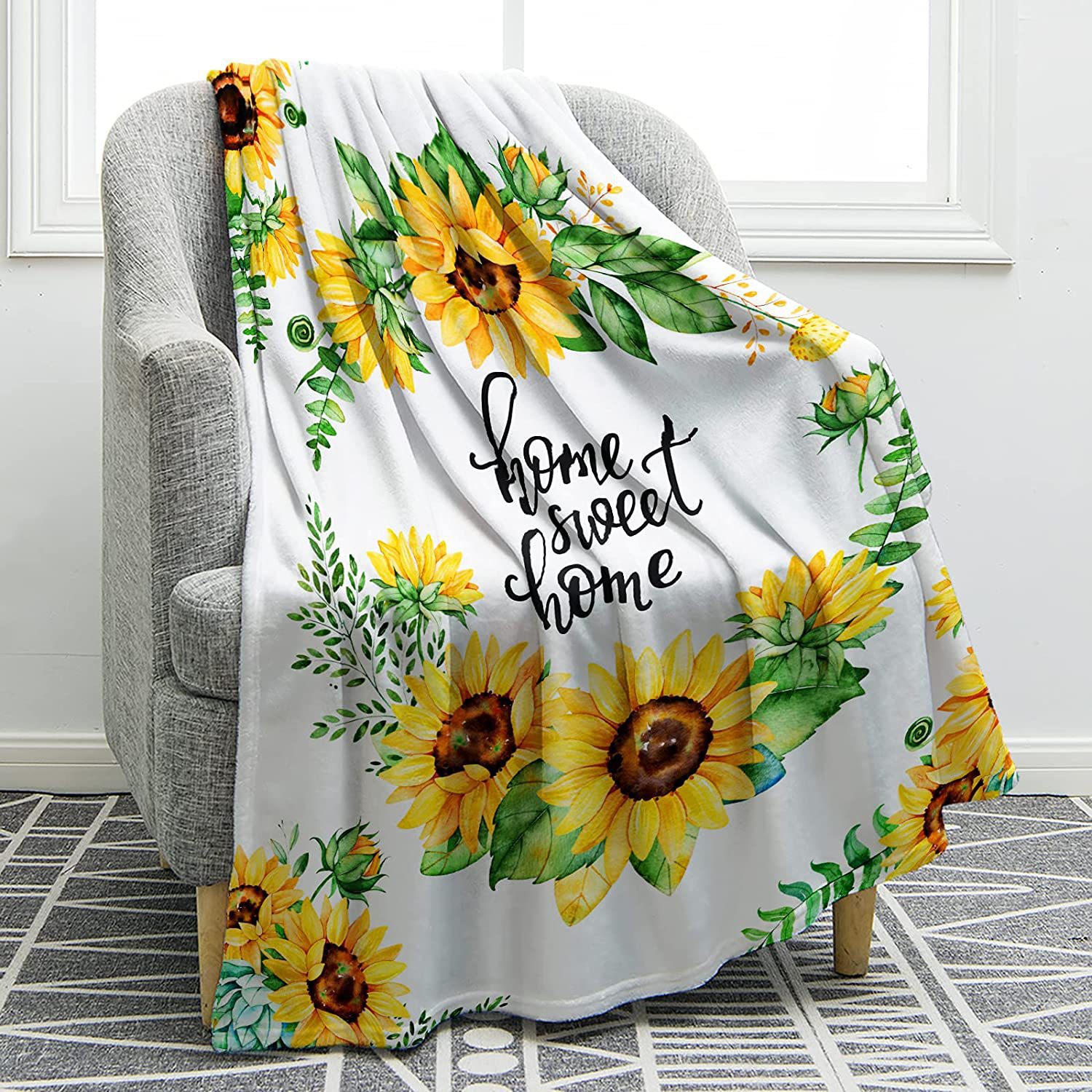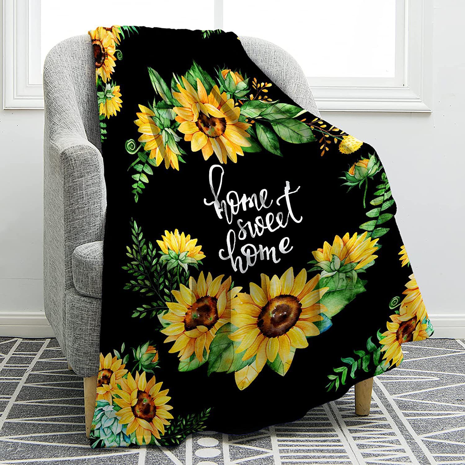 리 렌 홈 섬유 해바라기 커버 담요 담요 플란넬 양고기 인쇄 침대 소파 담요 숙녀 선물 도매스토어 가기