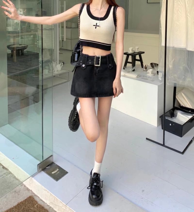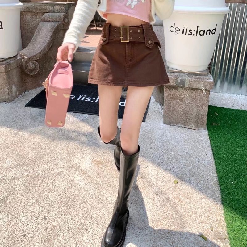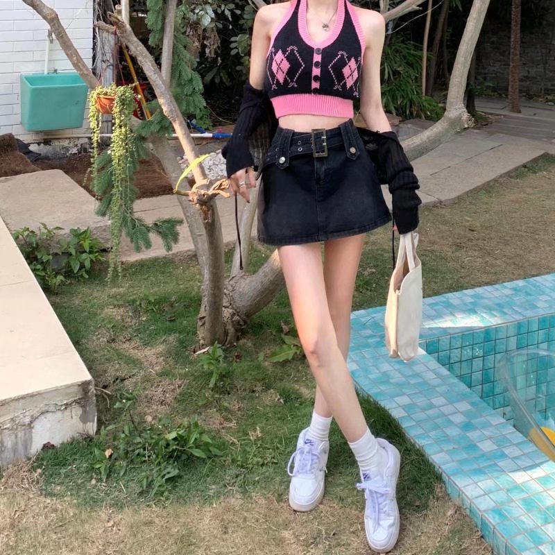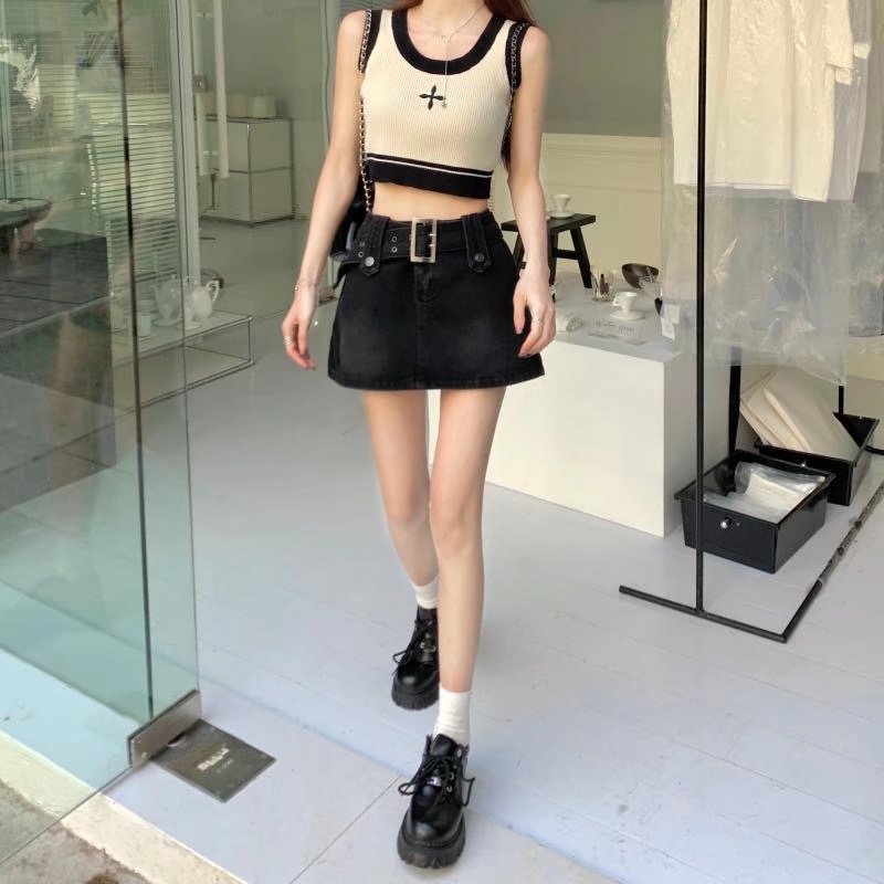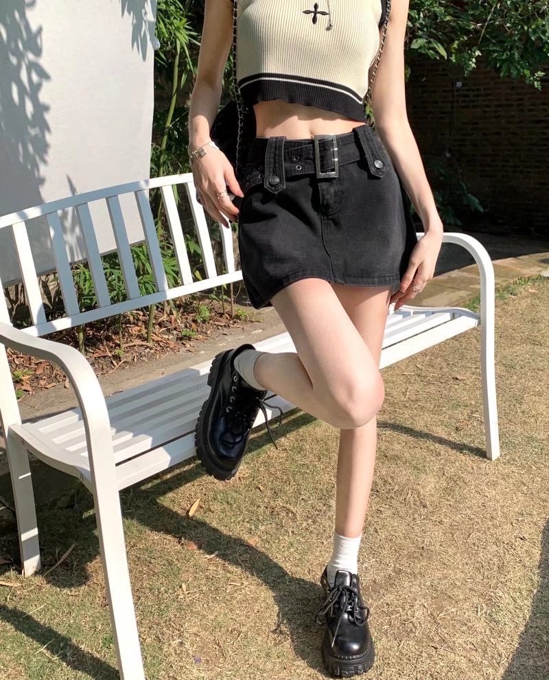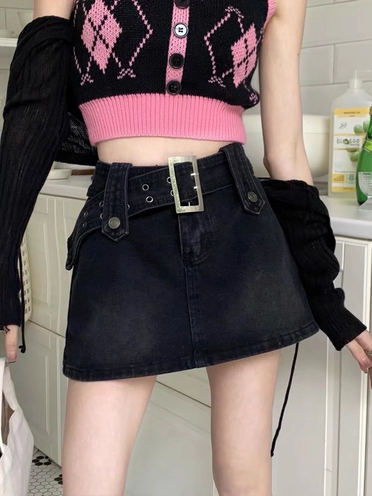 데님 스커트 여성 아메리칸 스타일 레트로 작은 높은 허리 스파이스 소녀 스커트 A 라인 블랙 힙합 스커트 스커트스토어 가기