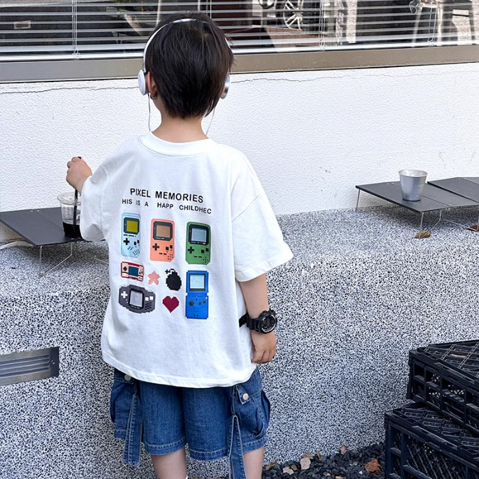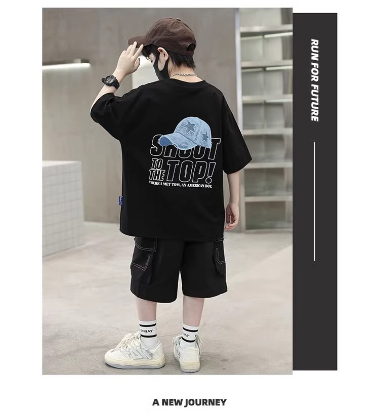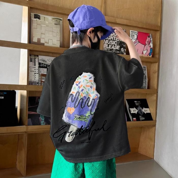 소년 반팔 티셔츠 2025 새로운 여름 유행 거리 중년 소년 여름 의류 순수 코튼 반팔 유행 T스토어 가기