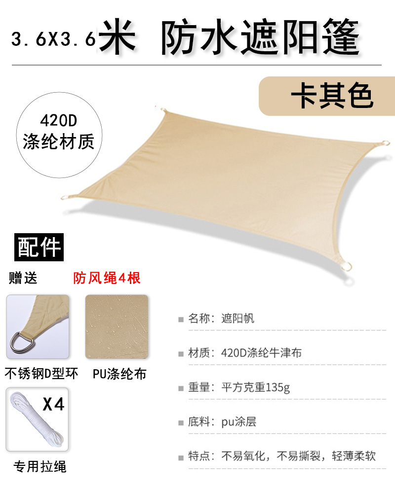 • ☆★카키색 3.6X 3.6m 곡선 가장자리가 있는 두꺼운 폴리에스테르 천☆★