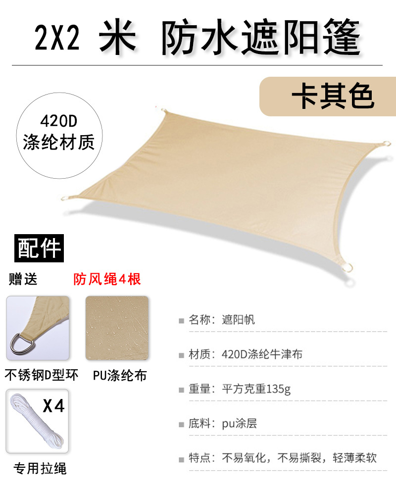 • ☆ ★ 카키색 2.5x 2.5m 곡선 가장자리가 있는 두꺼운 폴리에스테르 천 ☆ ★