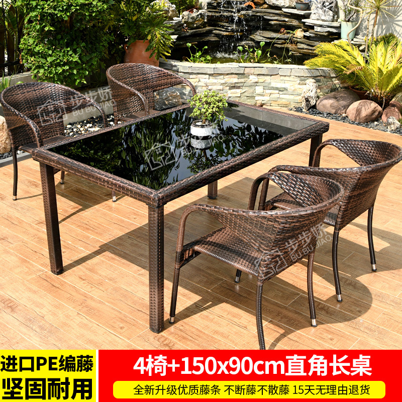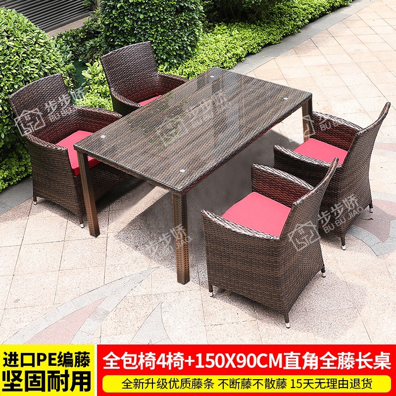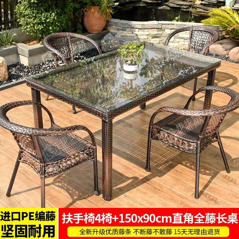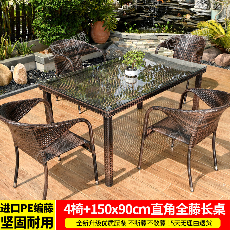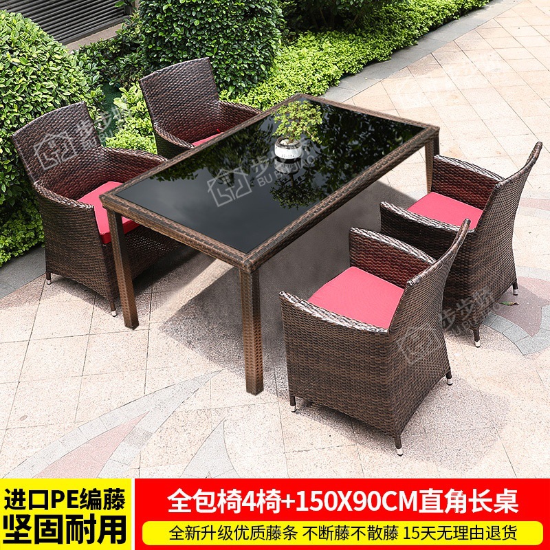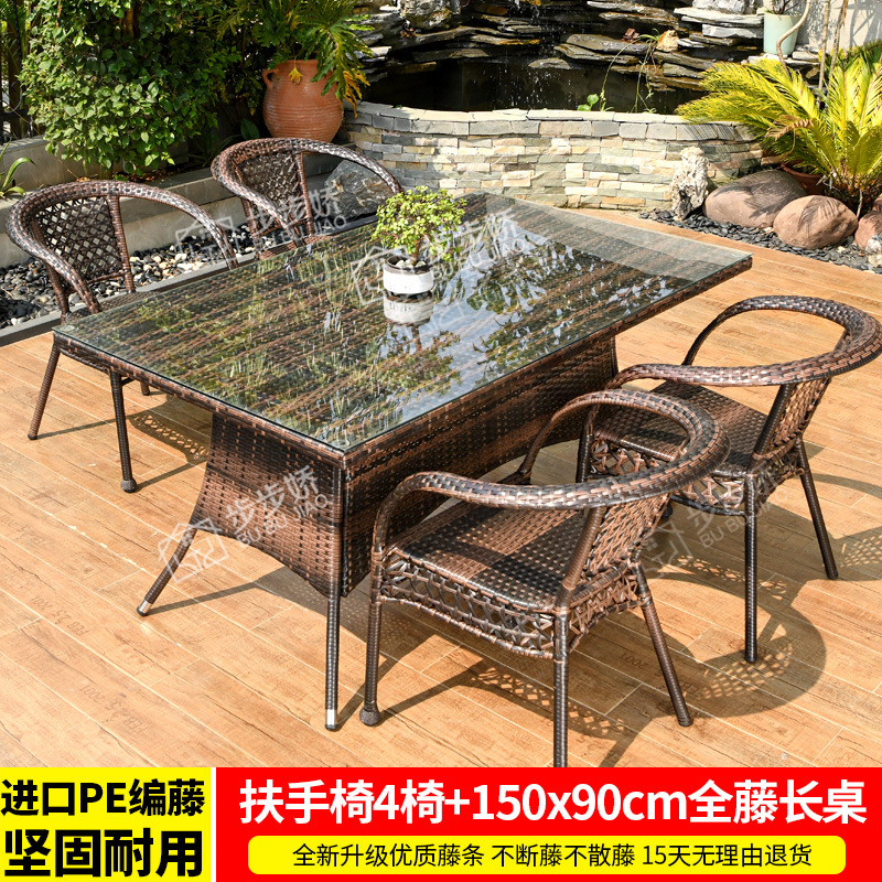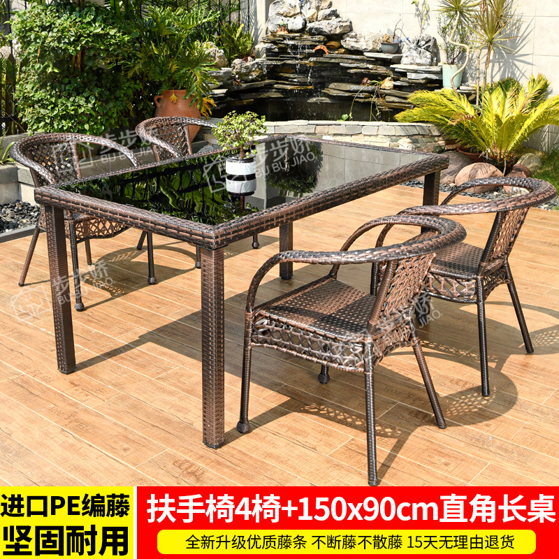 • ☆★안락의자 4개 + 150x90cm 직각 전체 등나무 긴 테이블☆★