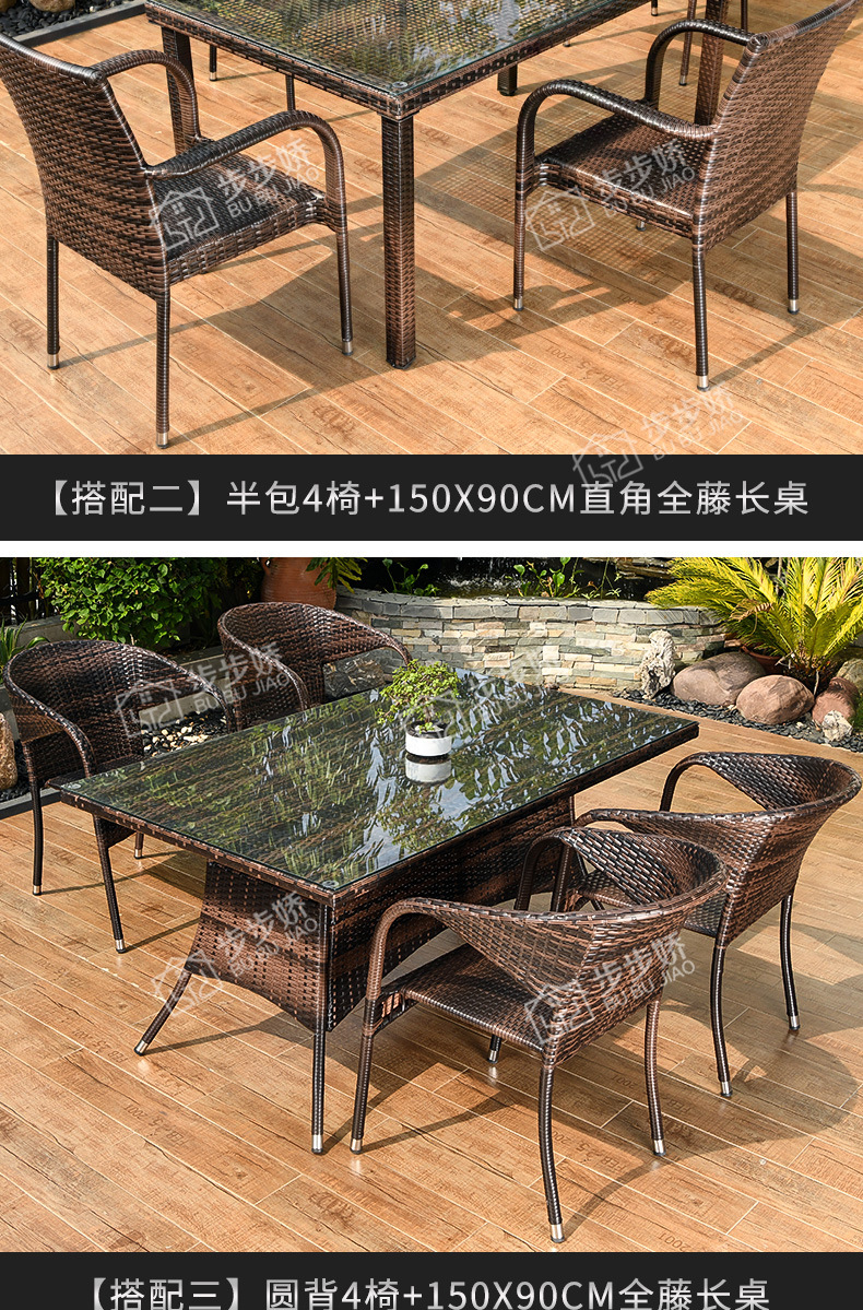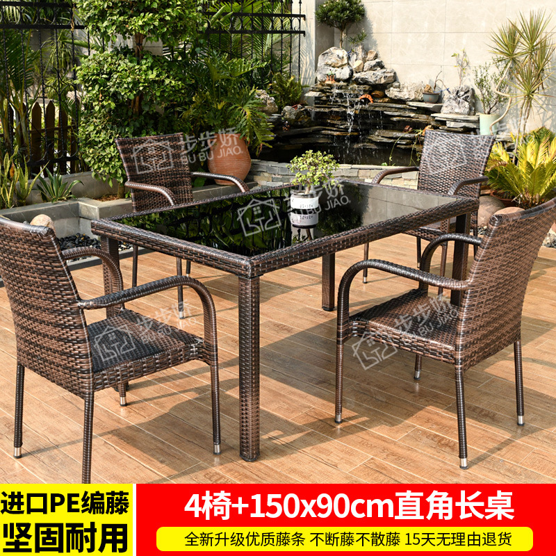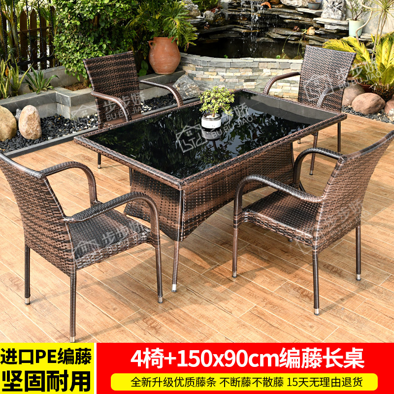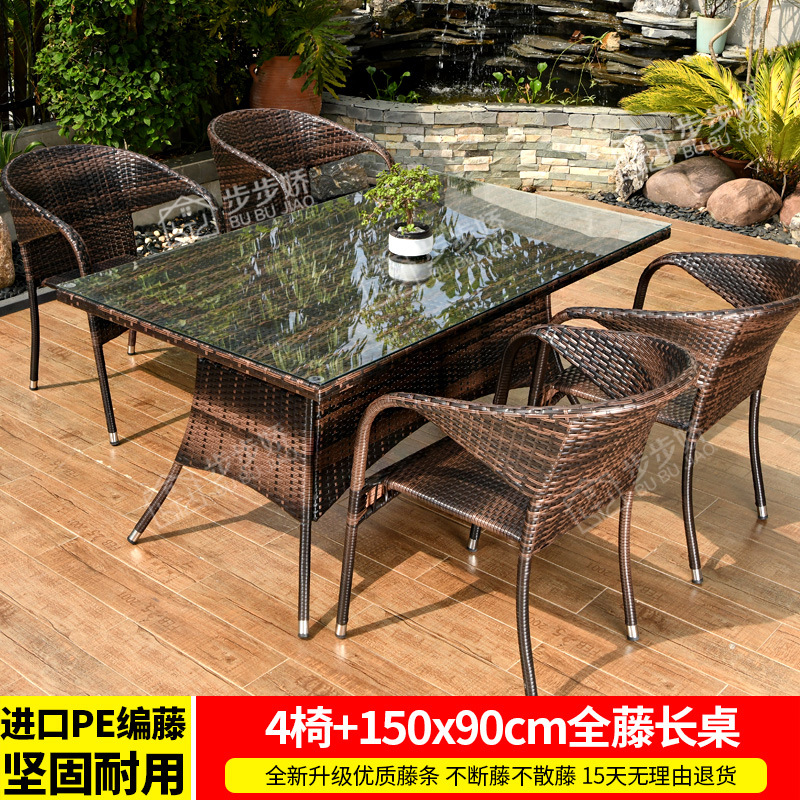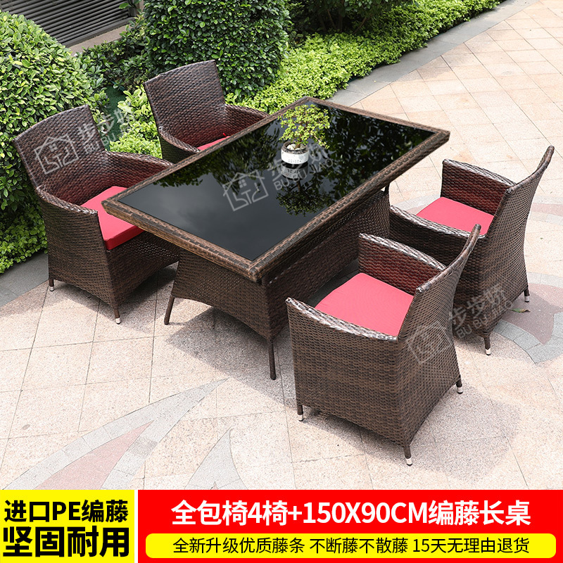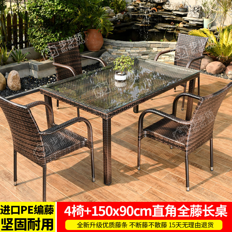 • ☆★안락의자 4개 + 150x90cm 직각 전체 등나무 긴 테이블☆★