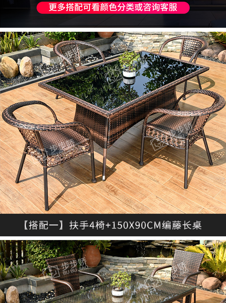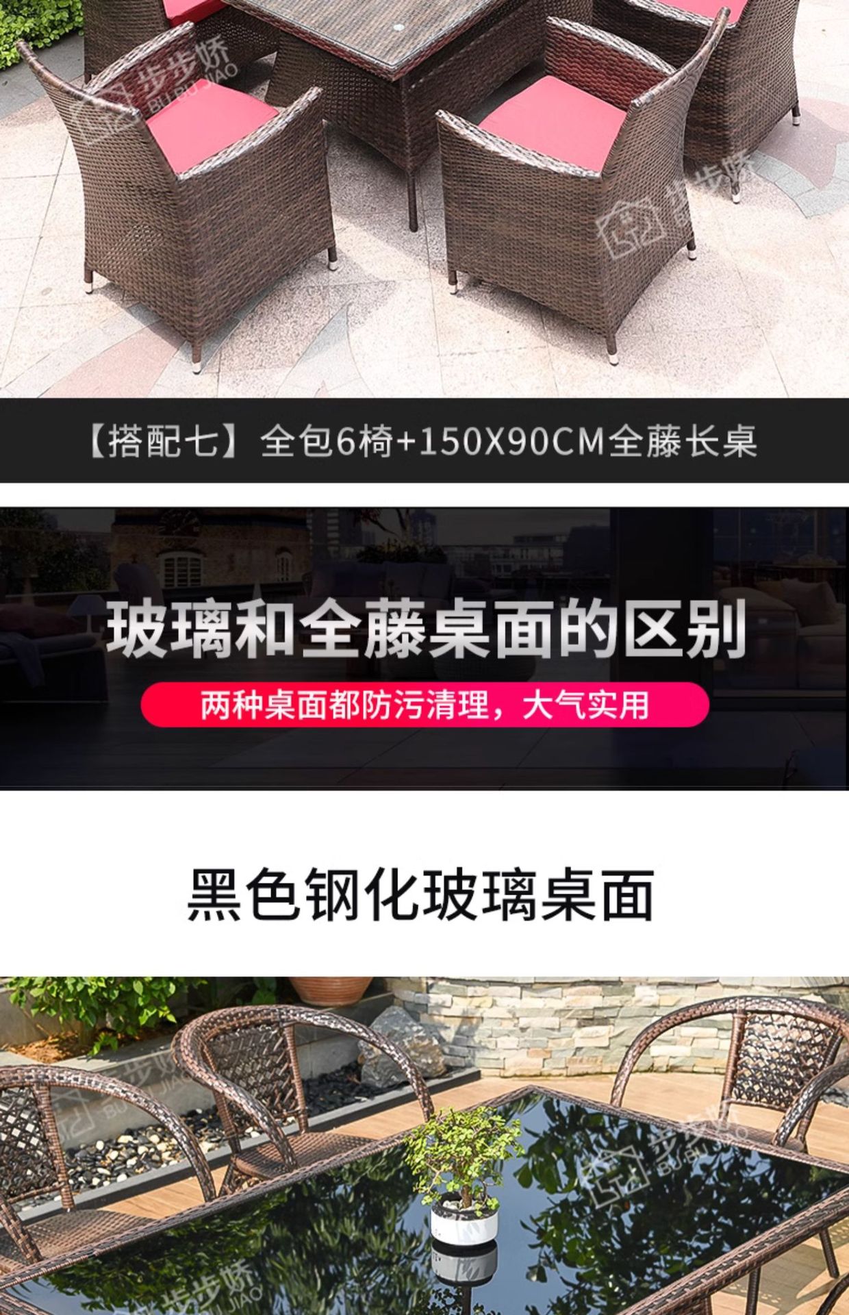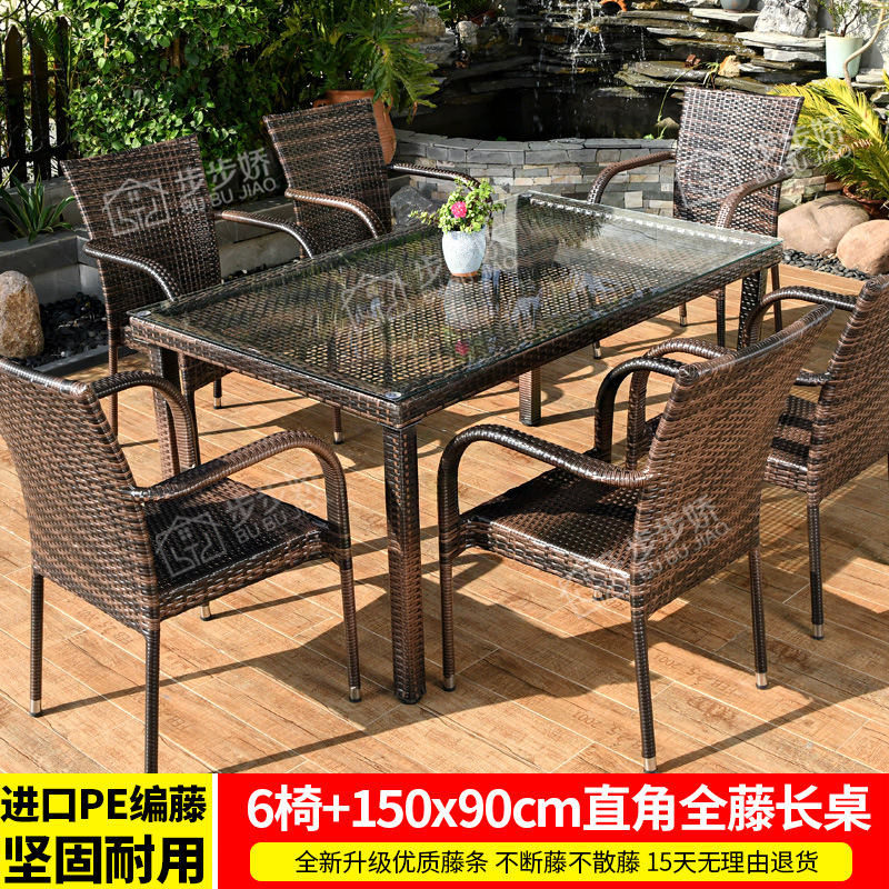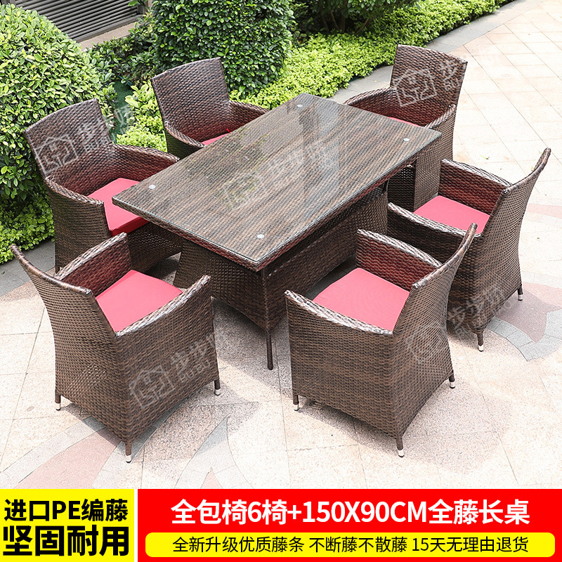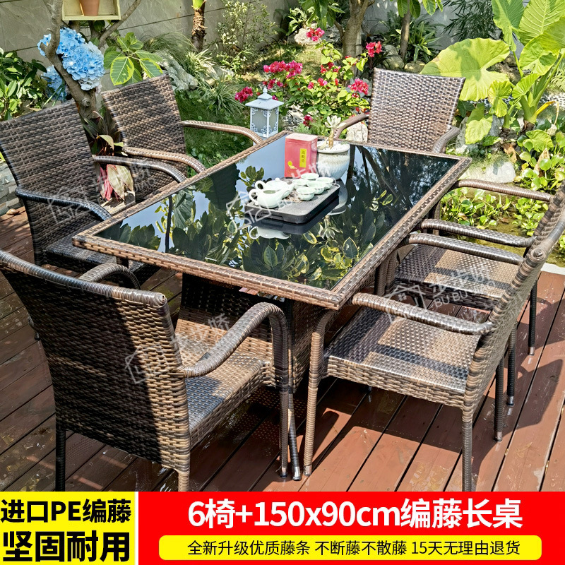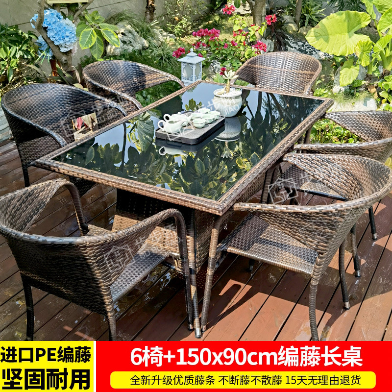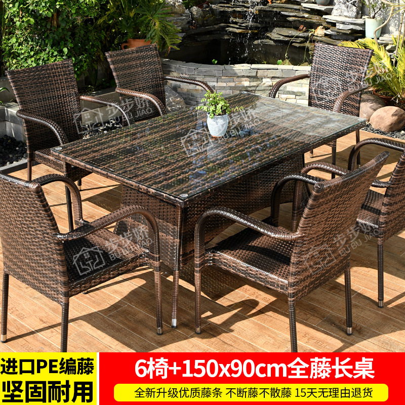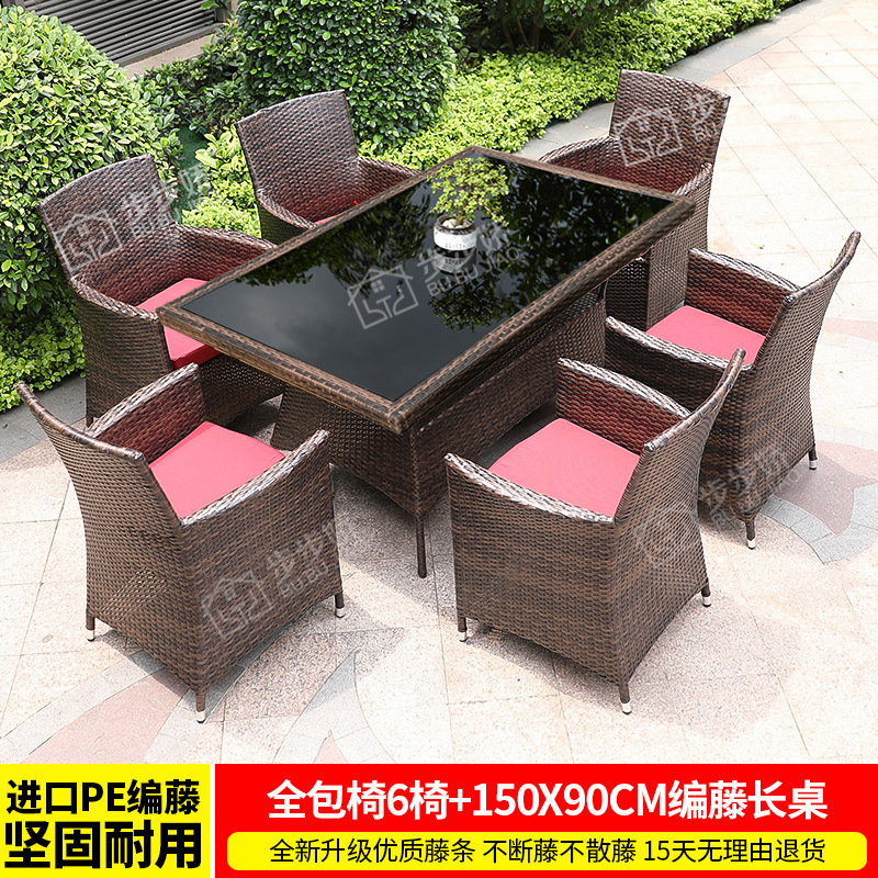 • ☆★반패키지 의자 6개 + 150x90cm 전체 등나무 긴 테이블☆★