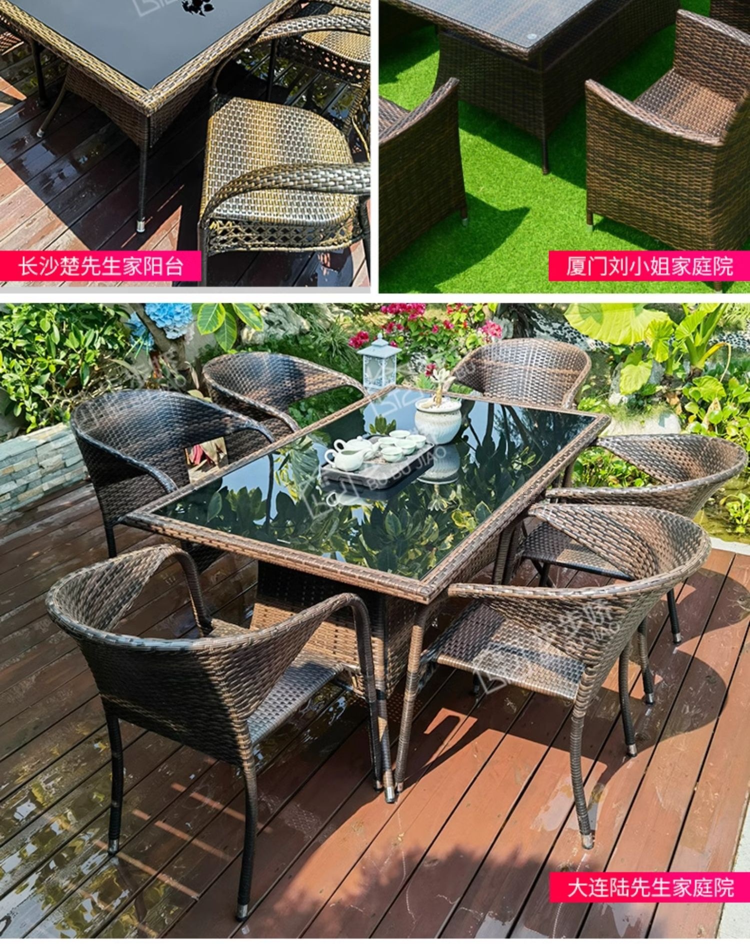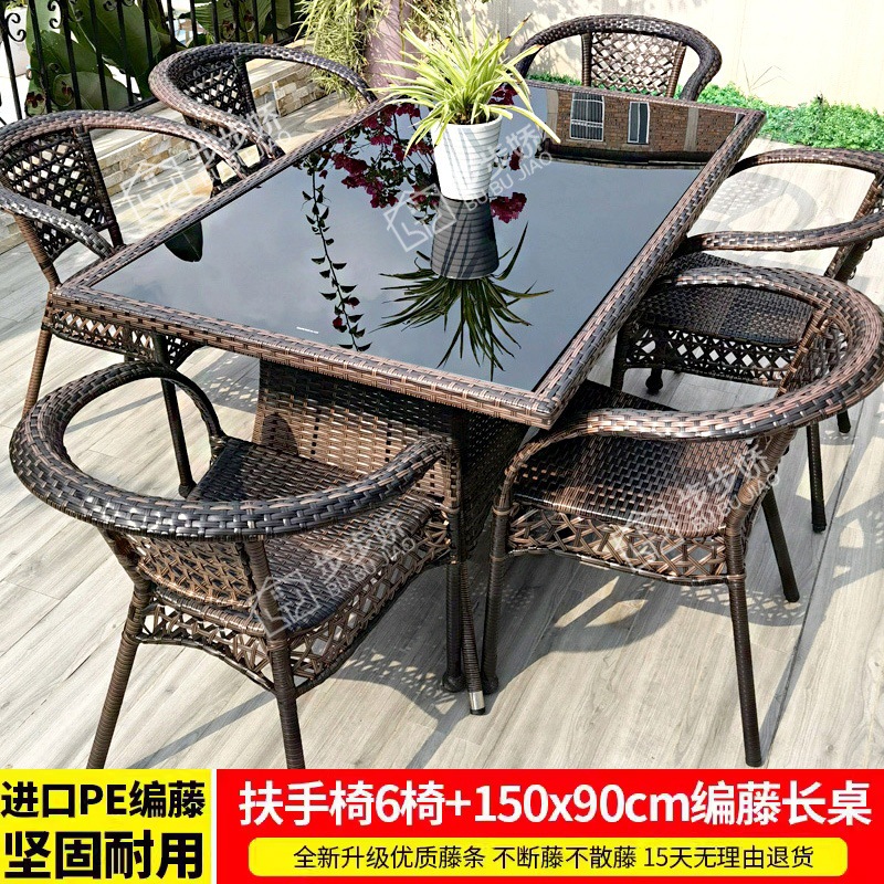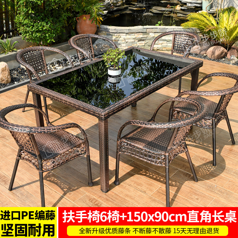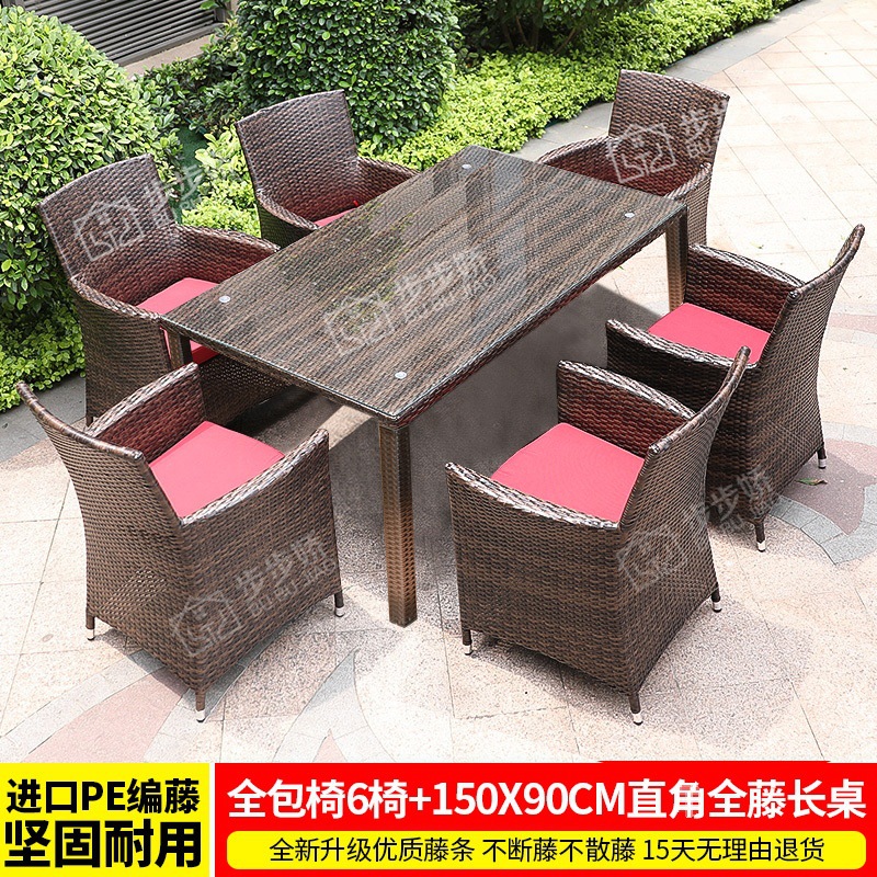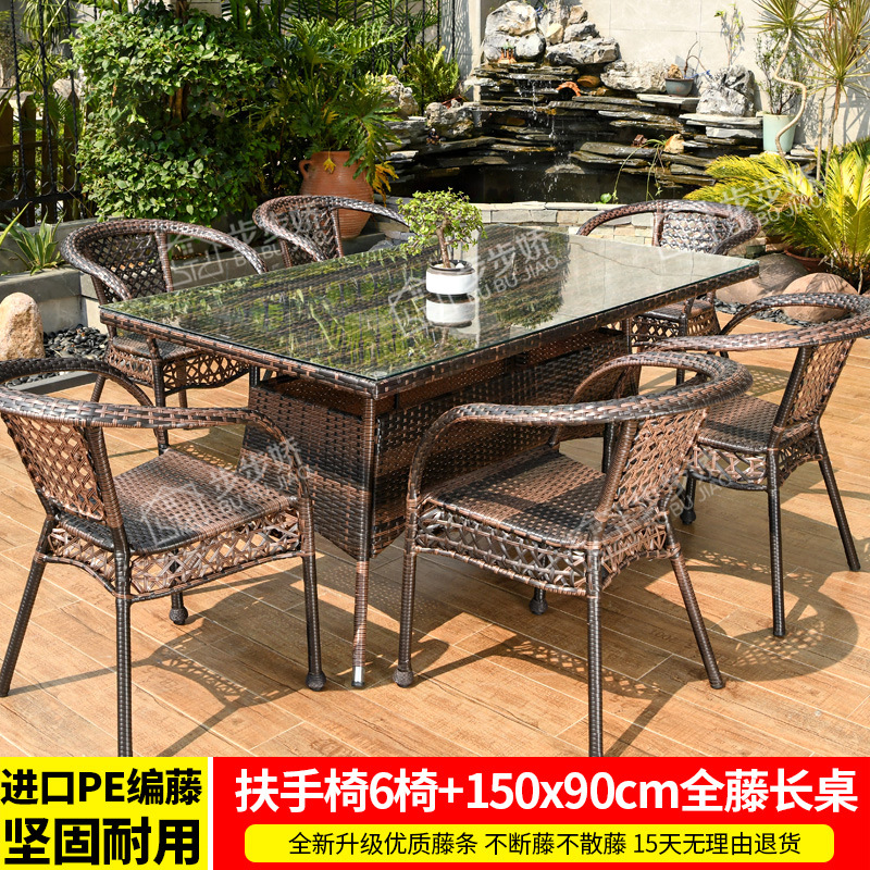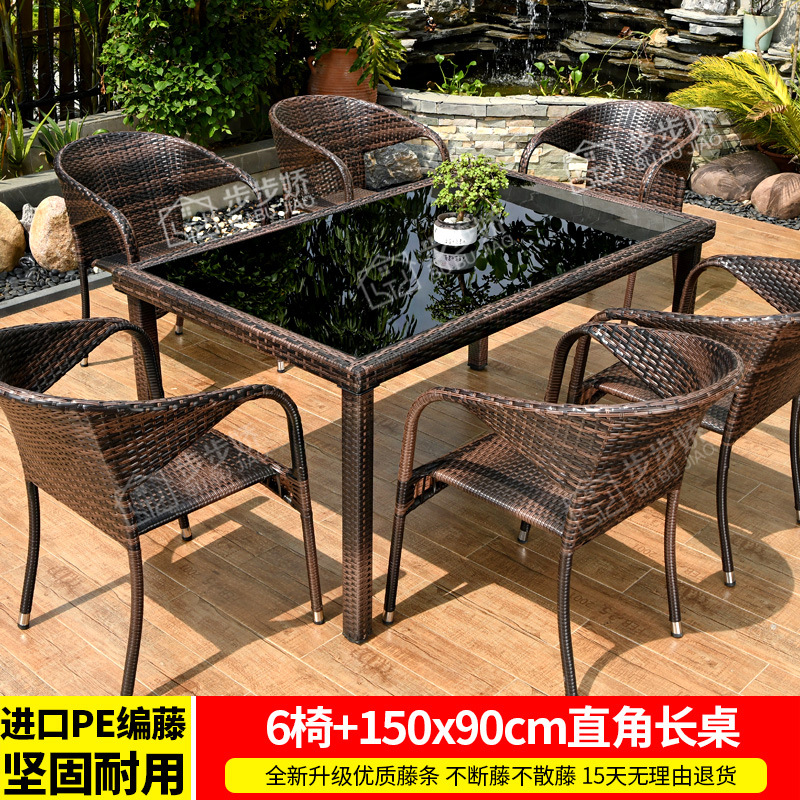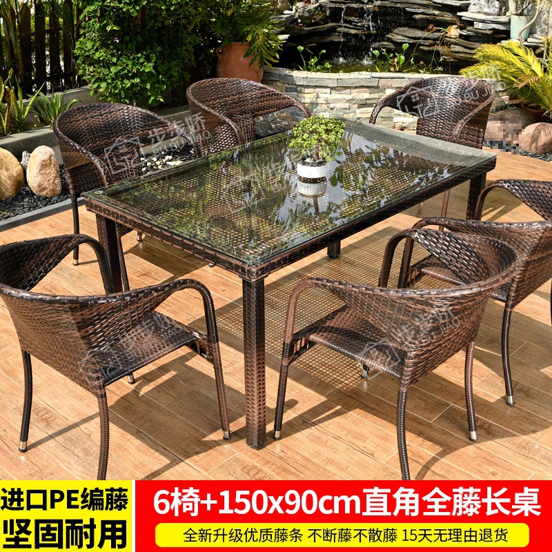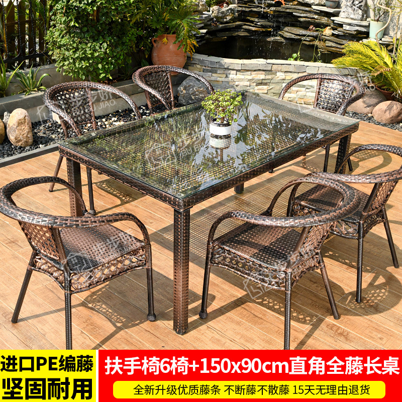 • ☆★안락의자 6개 + 150x90cm 직각 전체 등나무 긴 테이블☆★