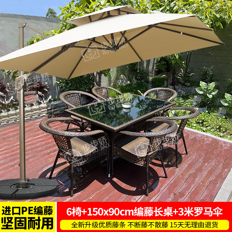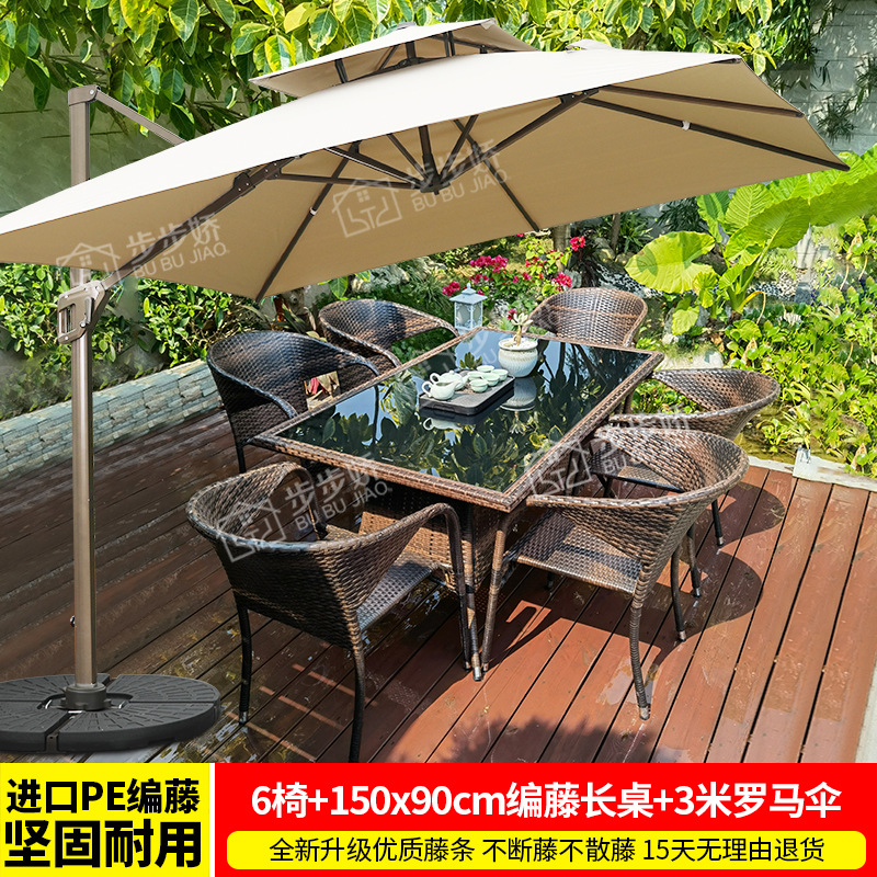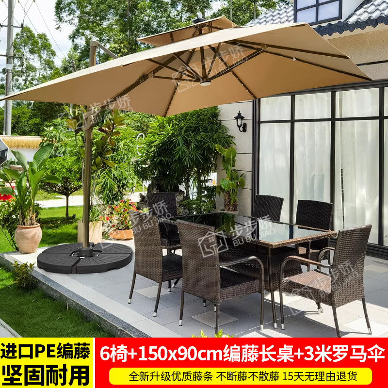 • ☆★안락의자 6개 + 150x90cm 라탄 긴 테이블 + 3m 로마 파라솔☆★