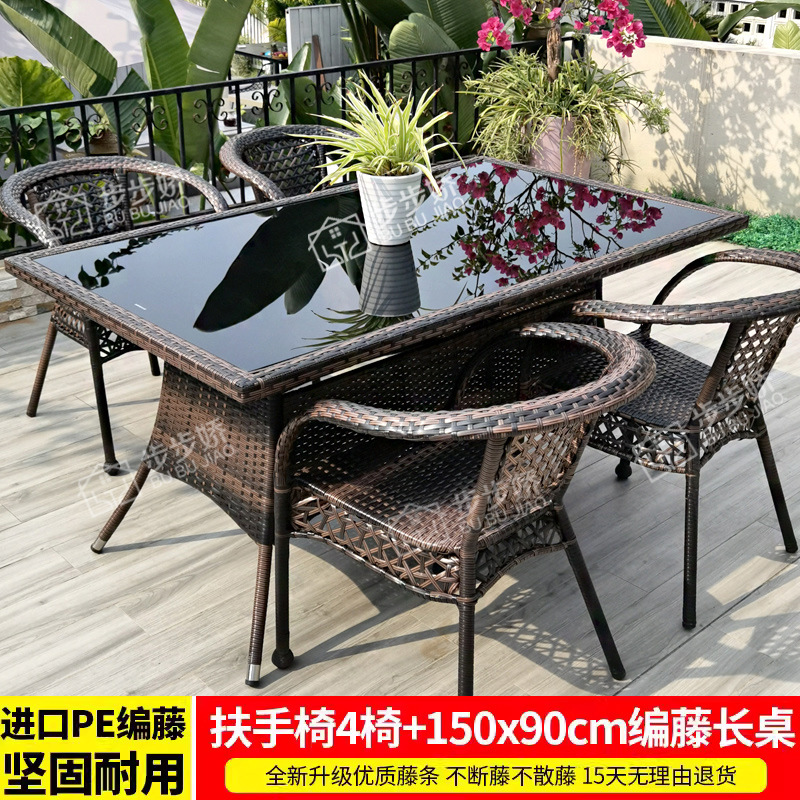 • ☆★안락의자 4개 + 150x90cm 전체 등나무 긴 테이블☆★