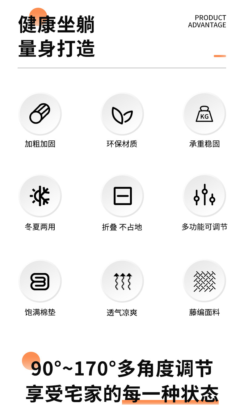 낮잠용 접이식 등받이 의자, 노인용 두꺼운 등받이, 장시간 앉아도 편안한 발코니 휴식용, 낮잠용.스토어 가기