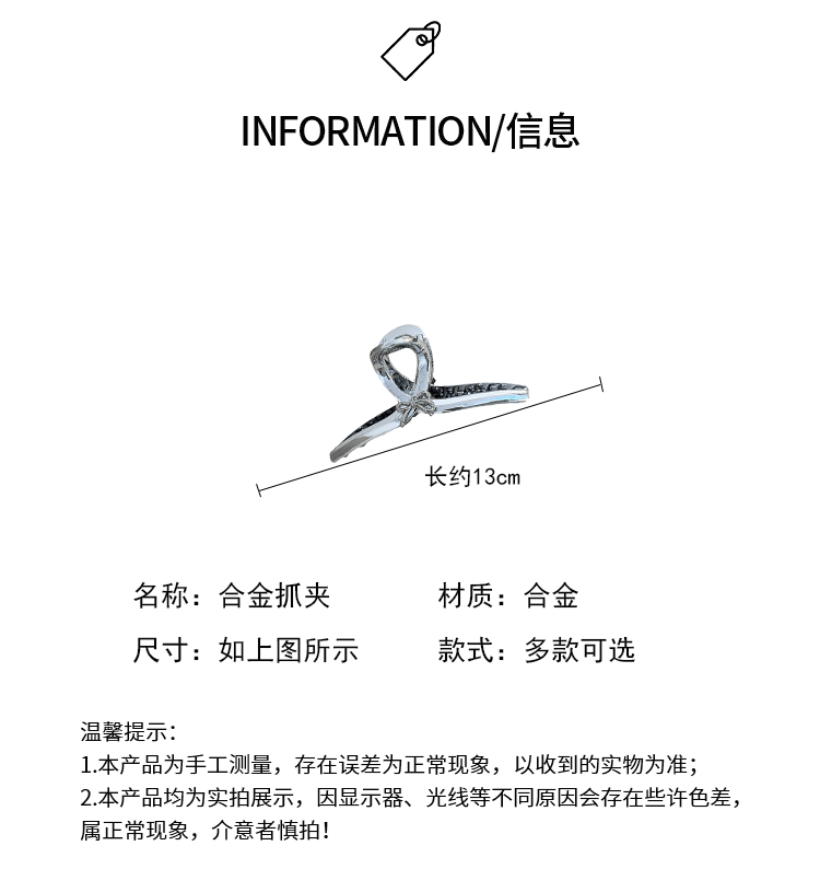 금속 질감! 실버 활 그랩 클립 고급 소녀의 머리 잡아 디스크 머리 상어 클립 머리의 머리 클립