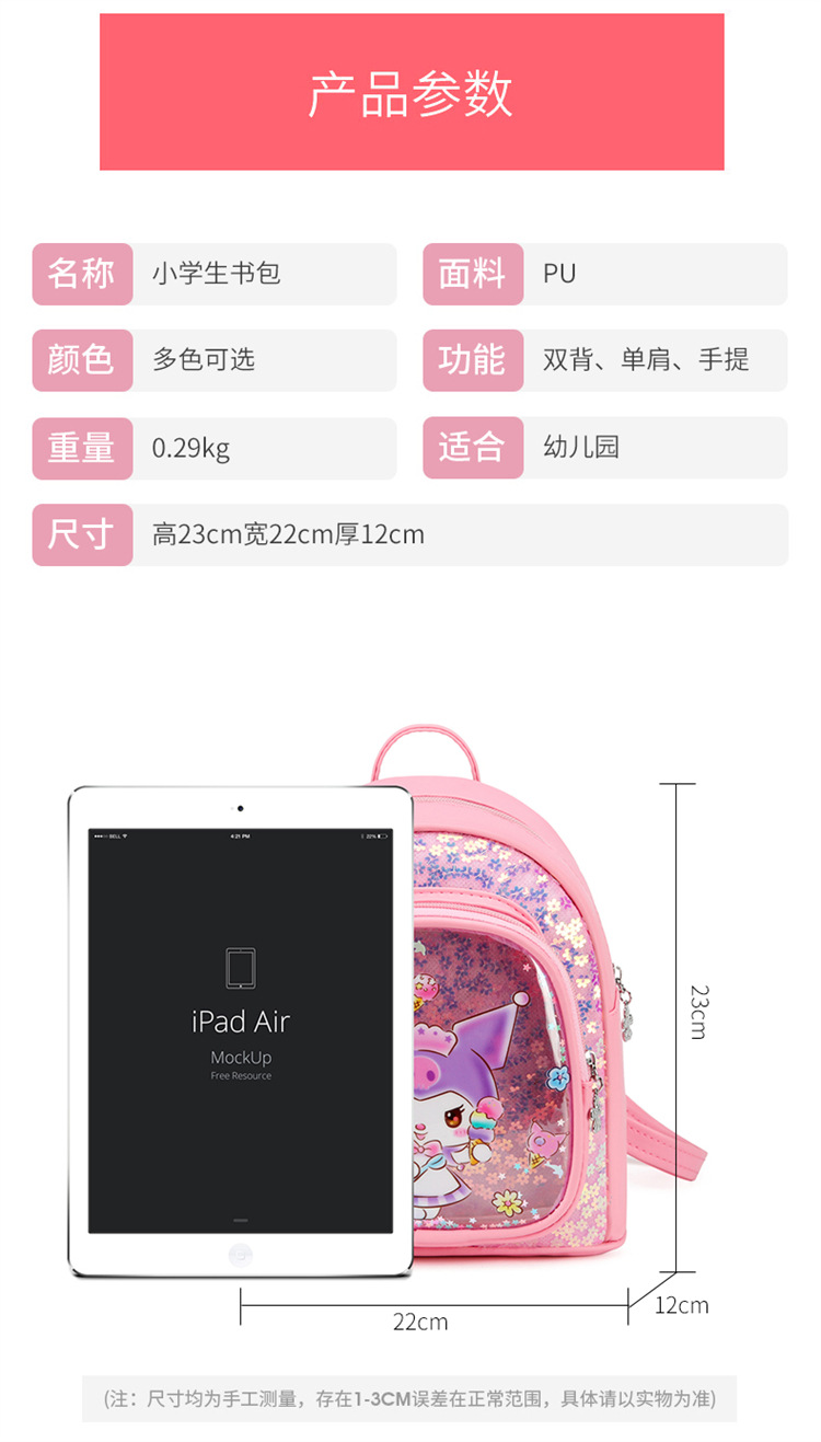 Kulomi 퀵 샌드 스쿨 백 Sanrio 어린이 배낭 유치원 소녀 귀여운 만화 pu 가죽 작은 학교 가방