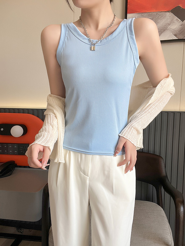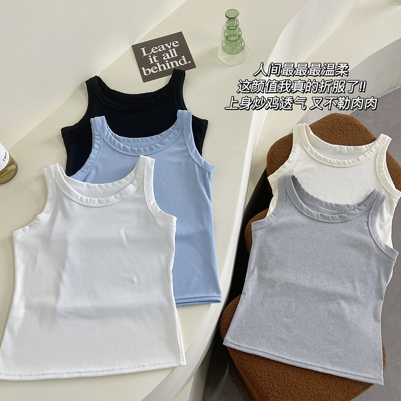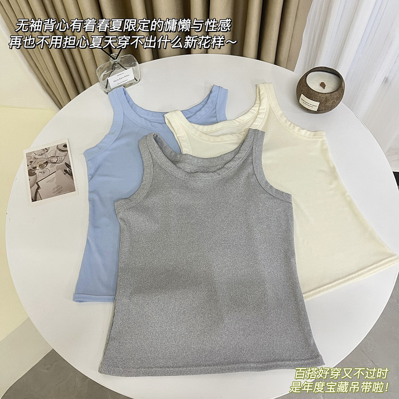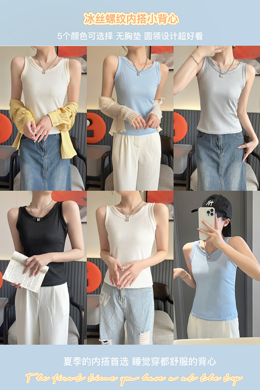 여름 착용 올 매치 아이스 실크 카미 솔 조끼 여성 높은 탄성 슬림 커버 파라미리스 스레드 내베이스 탑 얇은스토어 가기